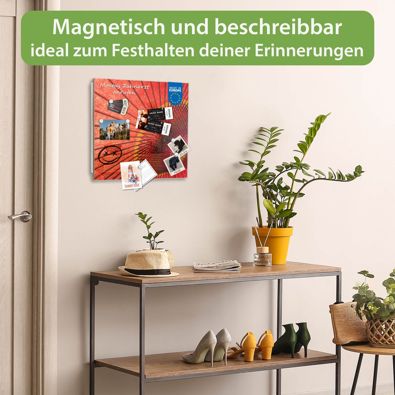✅ Magnetisch und mit Kreidestift beschreibbar, gehärtetes Glas, rechts angeschlagene TürOrdnung und Design in einem