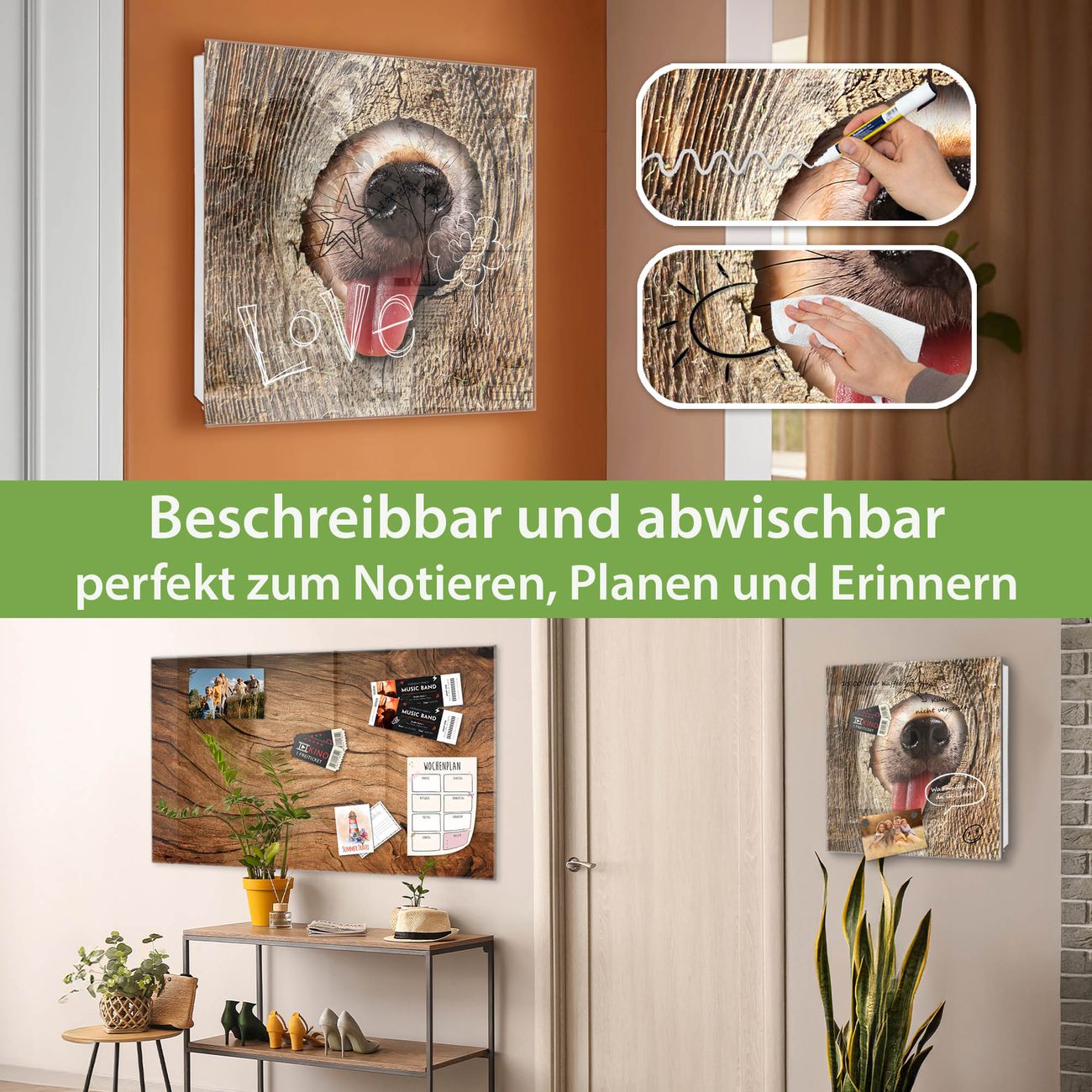 ✅ Magnetisch und mit Kreidestift beschreibbar, gehärtetes Glas, rechts angeschlagene TürOrdnung und Design in einem