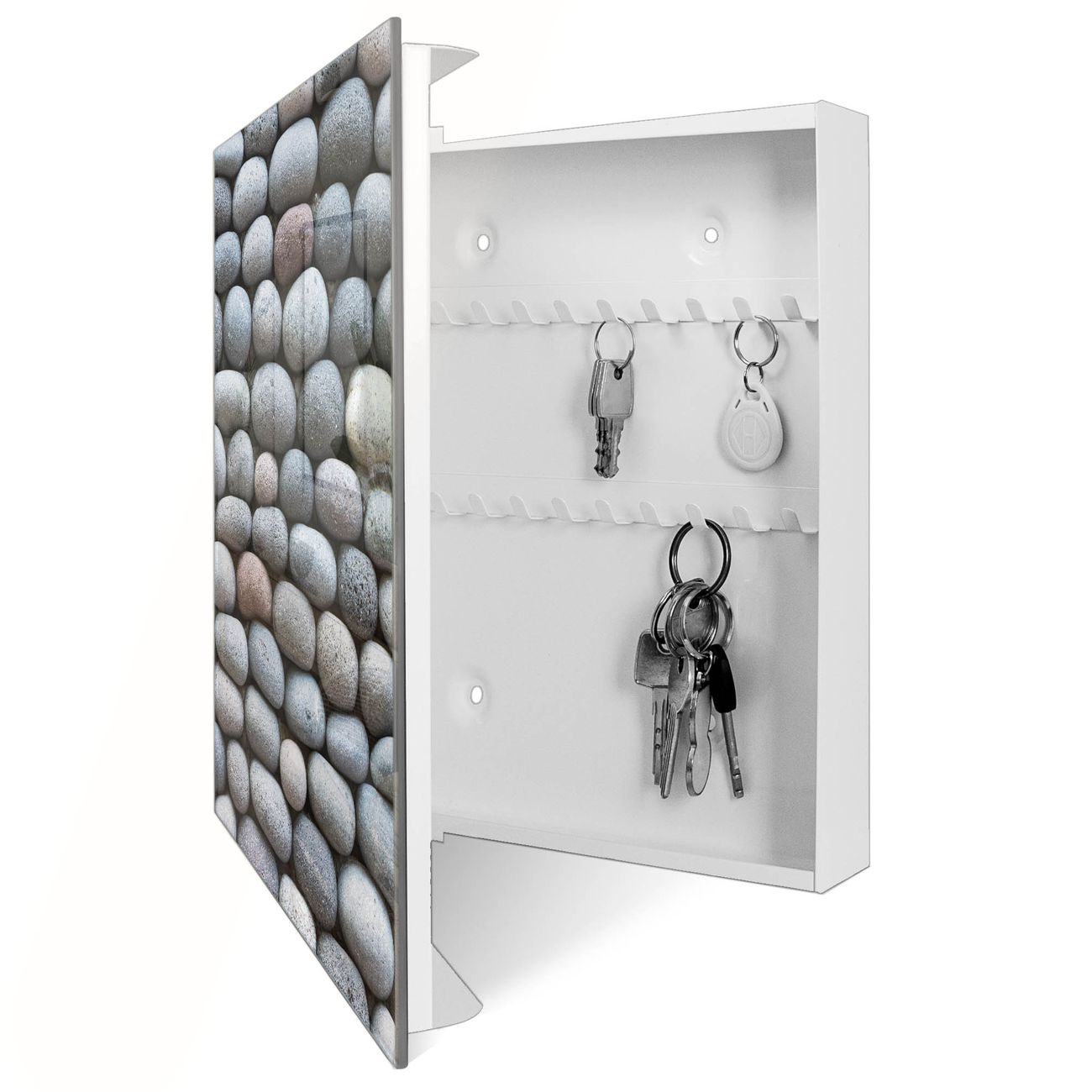 Schlüsselkasten Glas Motiv Runde Steine