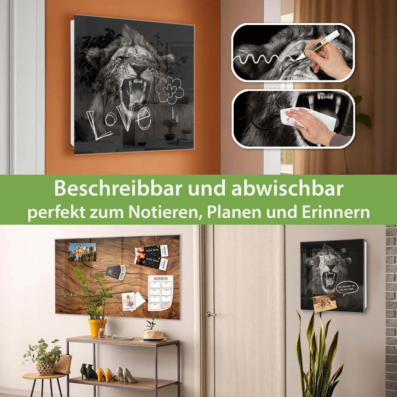✅ Magnetisch und mit Kreidestift beschreibbar, gehärtetes Glas, rechts angeschlagene TürOrdnung und Design in einem