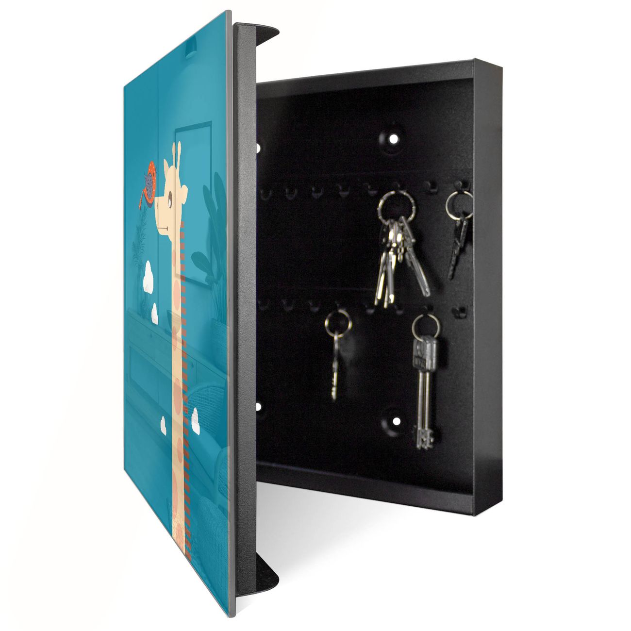 Bringe Ordnung und Eleganz in deinen Eingangsbereich mit dem banjado Schlüsselkasten Motiv Motiv Sally und Georg. Die moderne Schlüsselbox kombiniert funktionales Design mit hochwertiger Verarbeitung und wird so zu einem echten Hingucker in Flur, Büro oder Ferienwohnung. ✅ Stilvolle Schlüsselaufbewahrung mit Glasfront im Motiv Motiv Sally und Georg Der Design-Schlüsselkasten Motiv Motiv Sally und Georg bietet Platz für bis zu 50 Schlüssel, die auf 5 stabilen Reihen mit je 10 Haken übersichtlich verstaut werden. Mit seinen kompakten Maßen von 30 x 30 x 5 cm passt die Schlüsselbox perfekt auch in kleinere Räume. Der schwarz lackierte Stahlkorpus mit rechts angeschlagenem Türscharnier harmoniert mit der Glasfront und fügt sich nahtlos in jedes Wohnambiente ein. Ob als Schlüsselorganizer für Zuhause oder als praktische Lösung für Büros, Praxen und Gewerbe, der banjado Schlüsselkasten sorgt für Ordnung und Übersicht. Dank der magnetischen, mit Kreidestiften beschreibbaren Glasfront kannst du Notizen anheften oder Termine direkt auf der Oberfläche festhalten. Die Schlüsselbox Motiv Motiv Sally und Georg zur Wandmontage wird inklusive Befestigungsmaterial geliefert und ist schnell angebracht. So hast du deine Schlüssel jederzeit griffbereit und zugleich stilvoll verstaut. Mit diesem banjado Schlüsselkasten Motiv Motiv Sally und Georg kombinierst du praktische Aufbewahrung mit stilvollem Wohndesign. Ob privat oder geschäftlich, die Schlüsselbox sorgt für mehr Ordnung, Übersicht und ein wohnliches Ambiente.Vorteile im Überblick