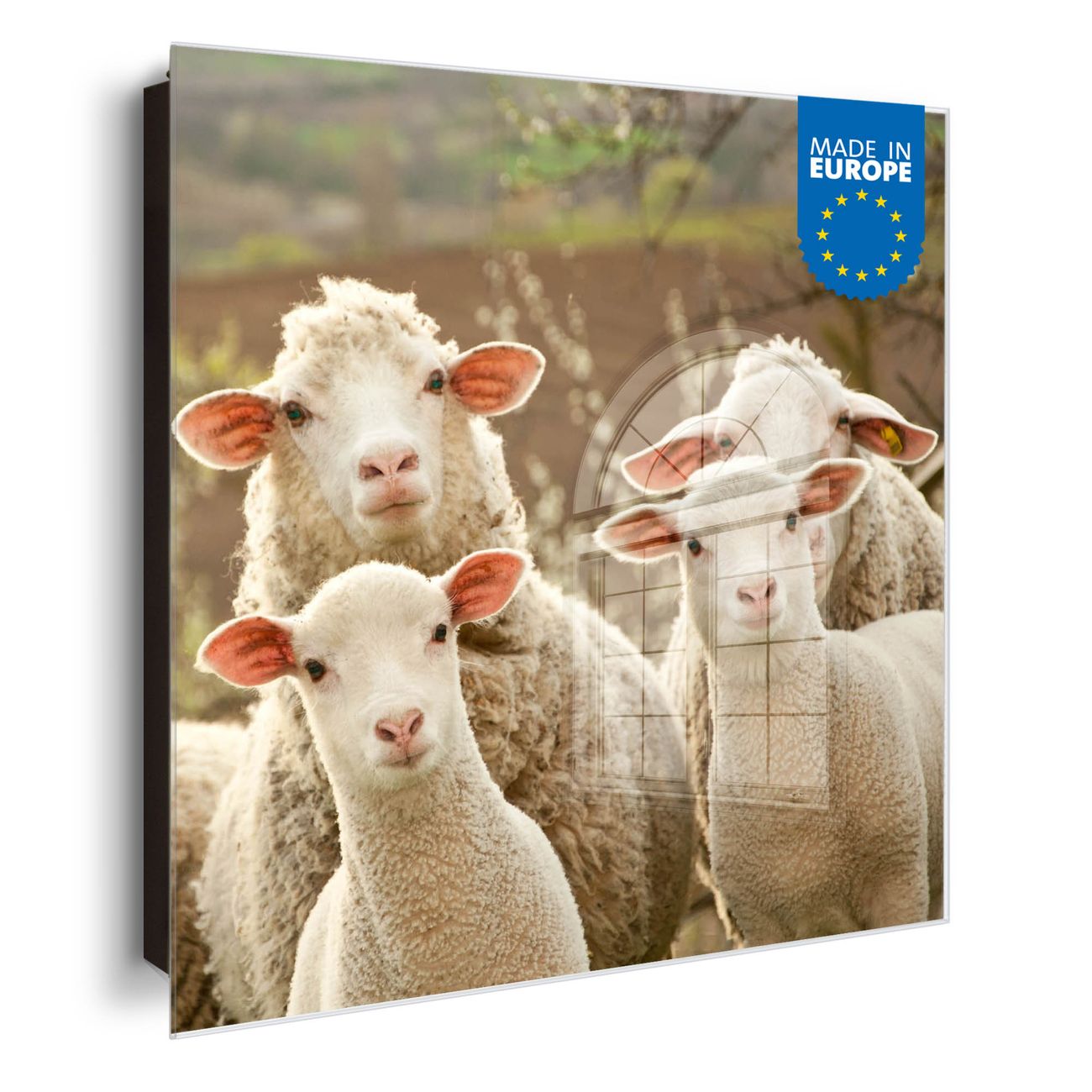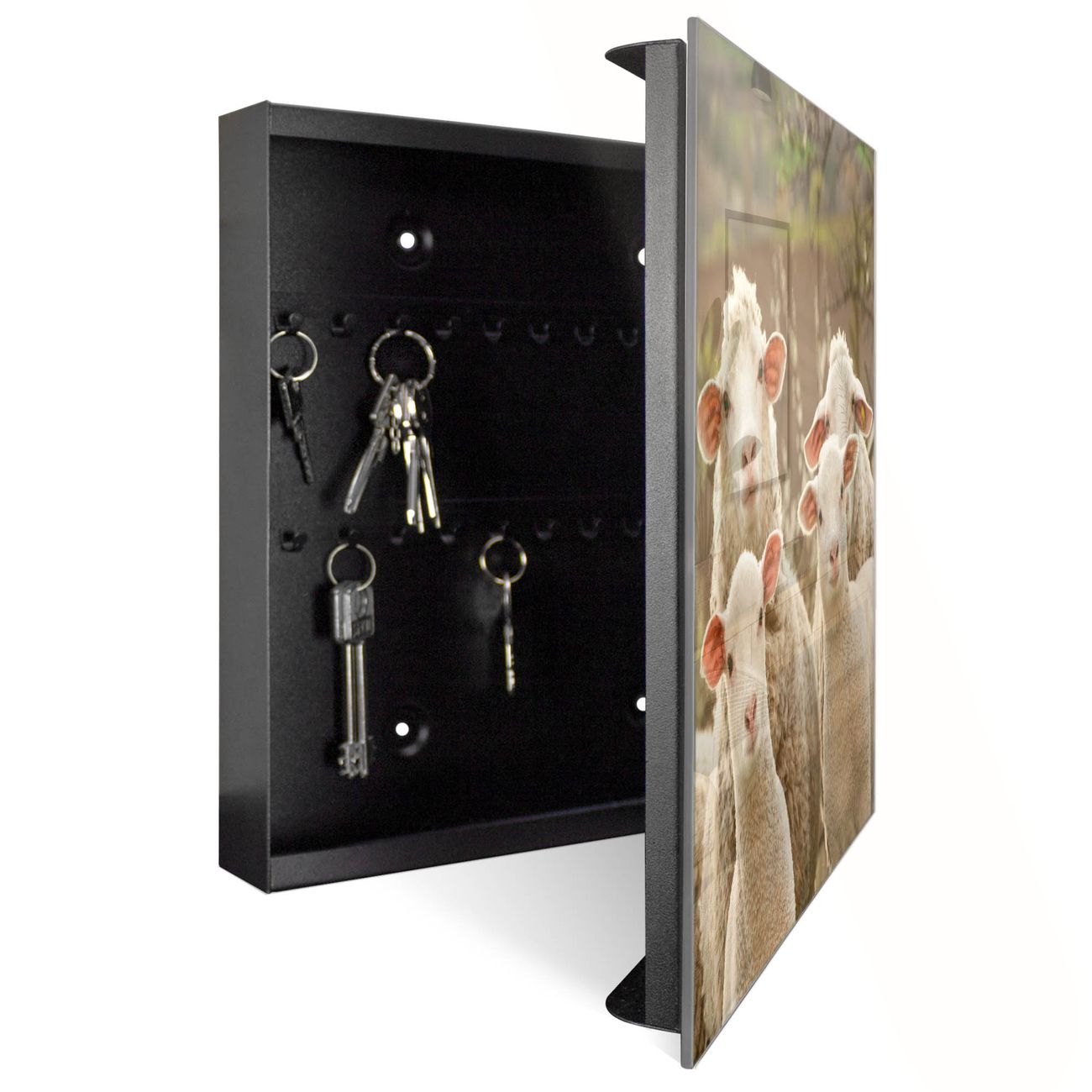 Schlüsselkasten Glas Motiv Schaffamilie