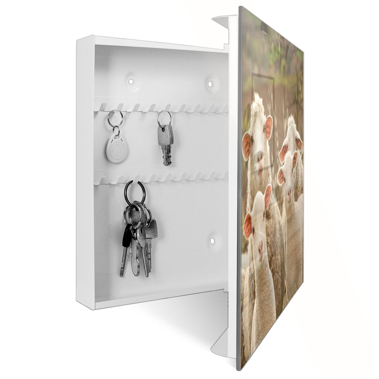 Schlüsselkasten Glas Motiv Schaffamilie