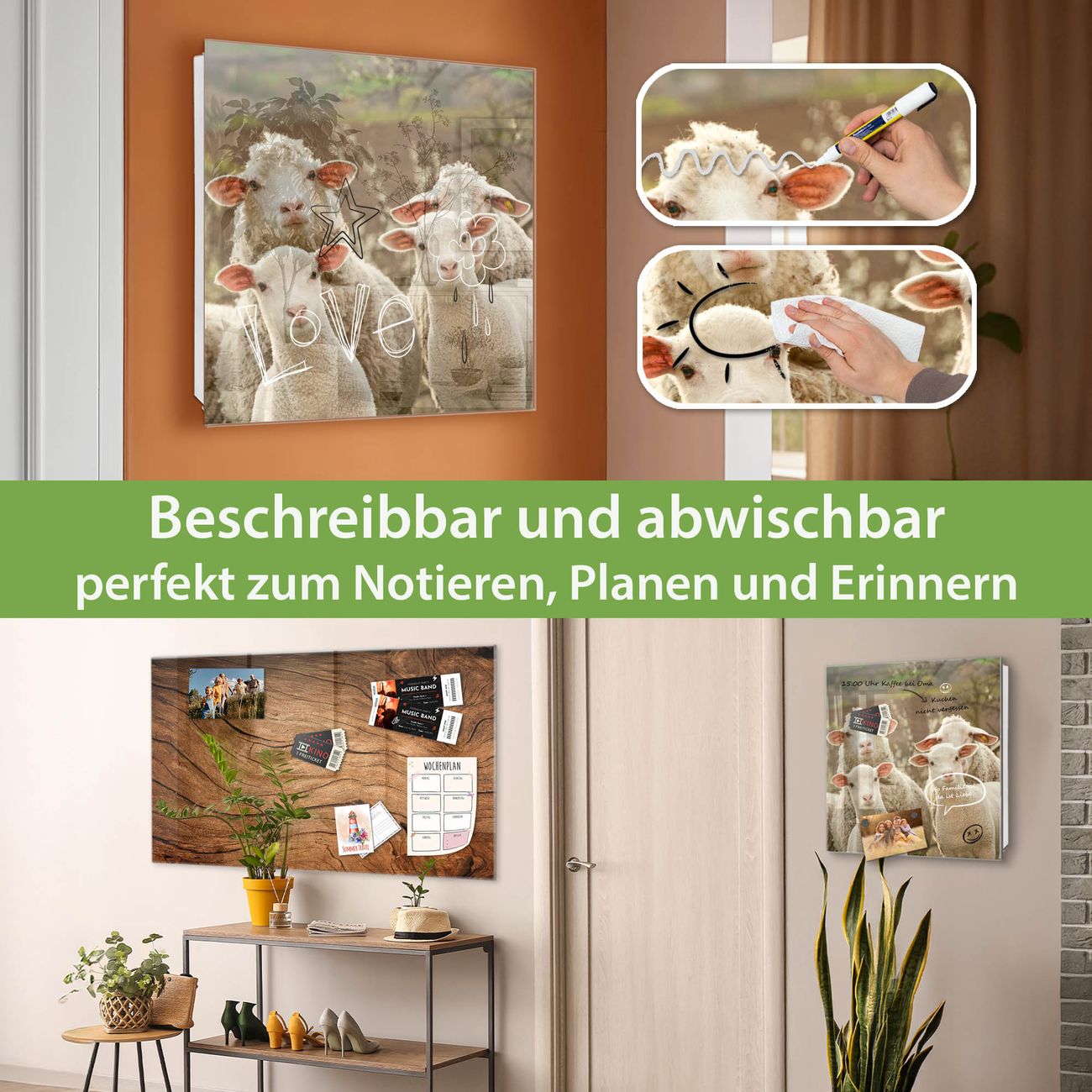 ✅ Magnetisch und mit Kreidestift beschreibbar, gehärtetes Glas, rechts angeschlagene TürOrdnung und Design in einem