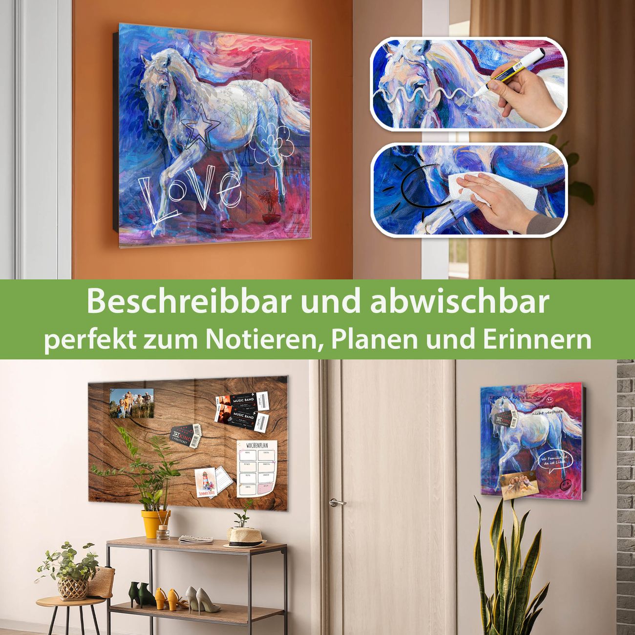 ✅ Magnetisch und mit Kreidestift beschreibbar, gehärtetes Glas, rechts angeschlagene TürOrdnung und Design in einem