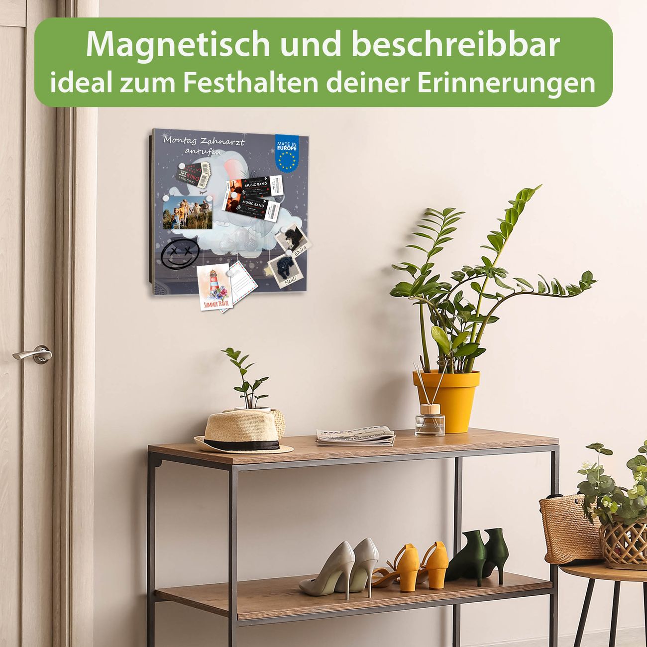 ✅ Magnetisch und mit Kreidestift beschreibbar, gehärtetes Glas, links angeschlagene TürOrdnung und Design in einem
