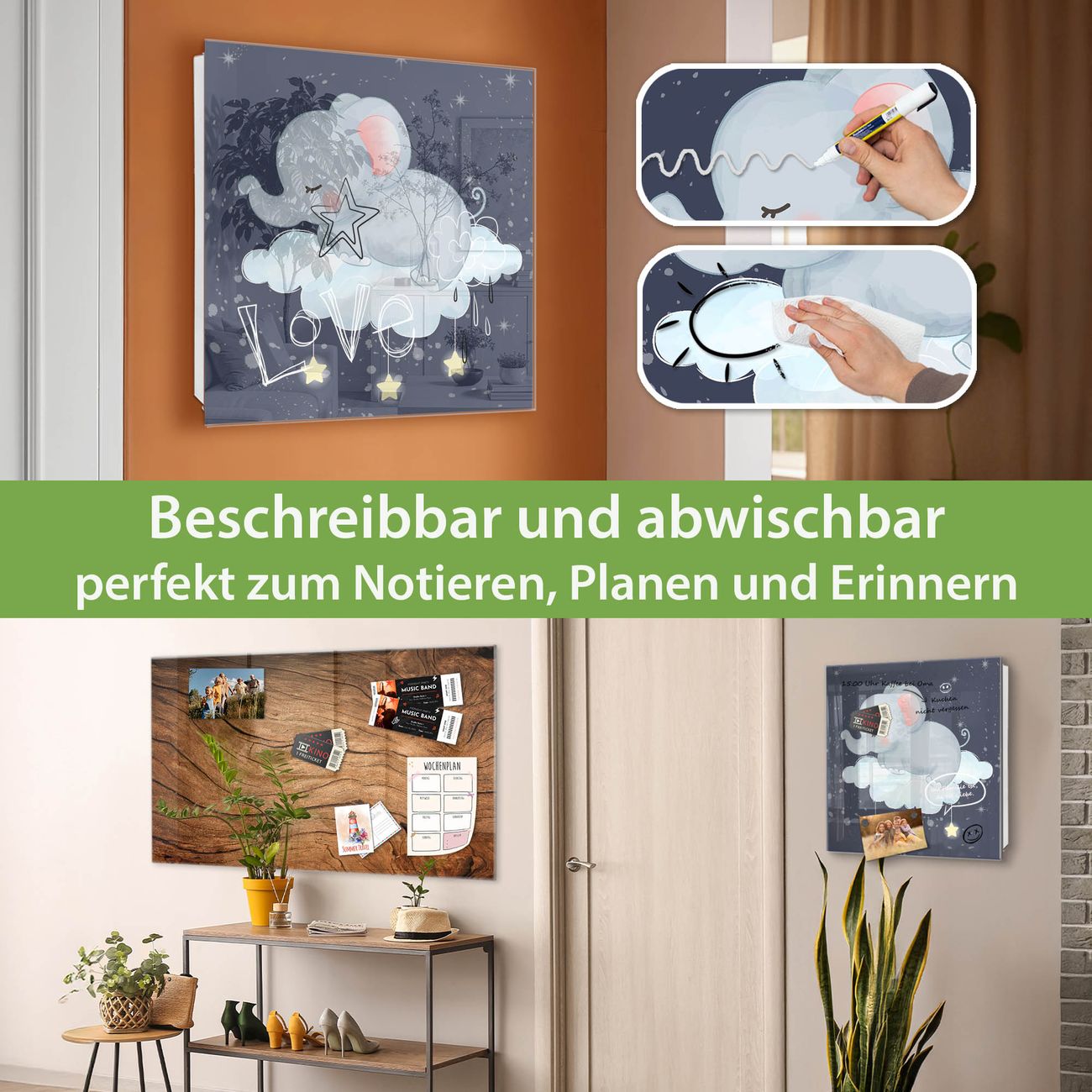 ✅ Magnetisch und mit Kreidestift beschreibbar, gehärtetes Glas, rechts angeschlagene TürOrdnung und Design in einem