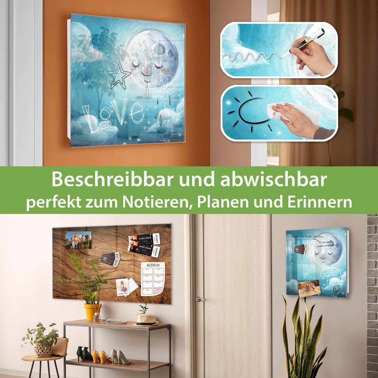 ✅ Magnetisch und mit Kreidestift beschreibbar, gehärtetes Glas, rechts angeschlagene TürOrdnung und Design in einem