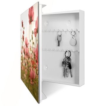 Bringe Ordnung und Eleganz in deinen Eingangsbereich mit dem banjado Schlüsselkasten Motiv Motiv Schmuckkörbchen. Die moderne Schlüsselbox kombiniert funktionales Design mit hochwertiger Verarbeitung und wird so zu einem echten Hingucker in Flur, Büro oder Ferienwohnung. ✅ Stilvolle Schlüsselaufbewahrung mit Glasfront im Motiv Motiv Schmuckkörbchen Der Design-Schlüsselkasten Motiv Motiv Schmuckkörbchen bietet Platz für bis zu 50 Schlüssel, die auf 5 stabilen Reihen mit je 10 Haken übersichtlich verstaut werden. Mit seinen kompakten Maßen von 30 x 30 x 5 cm passt die Schlüsselbox perfekt auch in kleinere Räume. Der weiß lackierte Stahlkorpus mit rechts angeschlagenem Türscharnier harmoniert mit der Glasfront und fügt sich nahtlos in jedes Wohnambiente ein. Ob als Schlüsselorganizer für Zuhause oder als praktische Lösung für Büros, Praxen und Gewerbe, der banjado Schlüsselkasten sorgt für Ordnung und Übersicht. Dank der magnetischen, mit Kreidestiften beschreibbaren Glasfront kannst du Notizen anheften oder Termine direkt auf der Oberfläche festhalten. Die Schlüsselbox Motiv Motiv Schmuckkörbchen zur Wandmontage wird inklusive Befestigungsmaterial geliefert und ist schnell angebracht. So hast du deine Schlüssel jederzeit griffbereit und zugleich stilvoll verstaut. Mit diesem banjado Schlüsselkasten Motiv Motiv Schmuckkörbchen kombinierst du praktische Aufbewahrung mit stilvollem Wohndesign. Ob privat oder geschäftlich, die Schlüsselbox sorgt für mehr Ordnung, Übersicht und ein wohnliches Ambiente.Vorteile im Überblick
