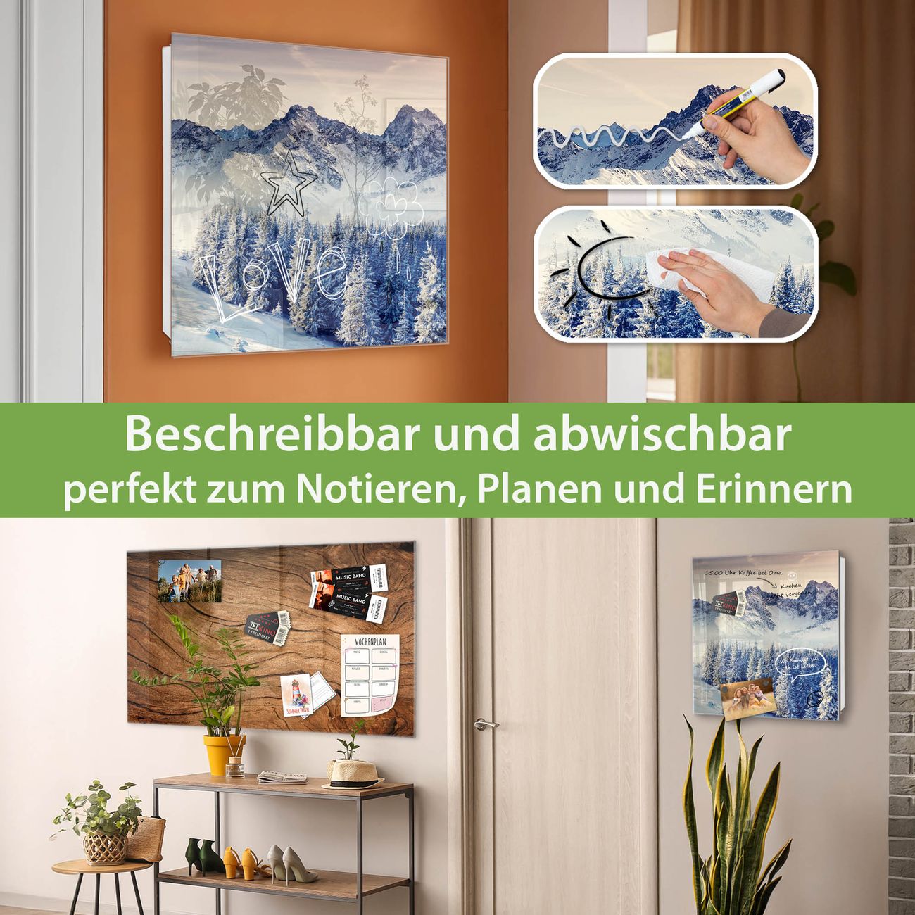 ✅ Magnetisch und mit Kreidestift beschreibbar, gehärtetes Glas, links angeschlagene TürOrdnung und Design in einem