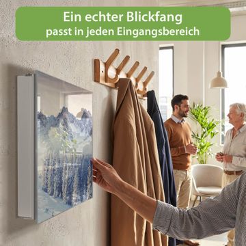 Bringe Ordnung und Eleganz in deinen Eingangsbereich mit dem banjado Schlüsselkasten Motiv Motiv Schneebedeckte Berge. Die moderne Schlüsselbox kombiniert funktionales Design mit hochwertiger Verarbeitung und wird so zu einem echten Hingucker in Flur, Büro oder Ferienwohnung. ✅ Stilvolle Schlüsselaufbewahrung mit Glasfront im Motiv Motiv Schneebedeckte Berge Der Design-Schlüsselkasten Motiv Motiv Schneebedeckte Berge bietet Platz für bis zu 50 Schlüssel, die auf 5 stabilen Reihen mit je 10 Haken übersichtlich verstaut werden. Mit seinen kompakten Maßen von 30 x 30 x 5 cm passt die Schlüsselbox perfekt auch in kleinere Räume. Der weiß lackierte Stahlkorpus mit rechts angeschlagenem Türscharnier harmoniert mit der Glasfront und fügt sich nahtlos in jedes Wohnambiente ein. Ob als Schlüsselorganizer für Zuhause oder als praktische Lösung für Büros, Praxen und Gewerbe, der banjado Schlüsselkasten sorgt für Ordnung und Übersicht. Dank der magnetischen, mit Kreidestiften beschreibbaren Glasfront kannst du Notizen anheften oder Termine direkt auf der Oberfläche festhalten. Die Schlüsselbox Motiv Motiv Schneebedeckte Berge zur Wandmontage wird inklusive Befestigungsmaterial geliefert und ist schnell angebracht. So hast du deine Schlüssel jederzeit griffbereit und zugleich stilvoll verstaut. Mit diesem banjado Schlüsselkasten Motiv Motiv Schneebedeckte Berge kombinierst du praktische Aufbewahrung mit stilvollem Wohndesign. Ob privat oder geschäftlich, die Schlüsselbox sorgt für mehr Ordnung, Übersicht und ein wohnliches Ambiente.Vorteile im Überblick