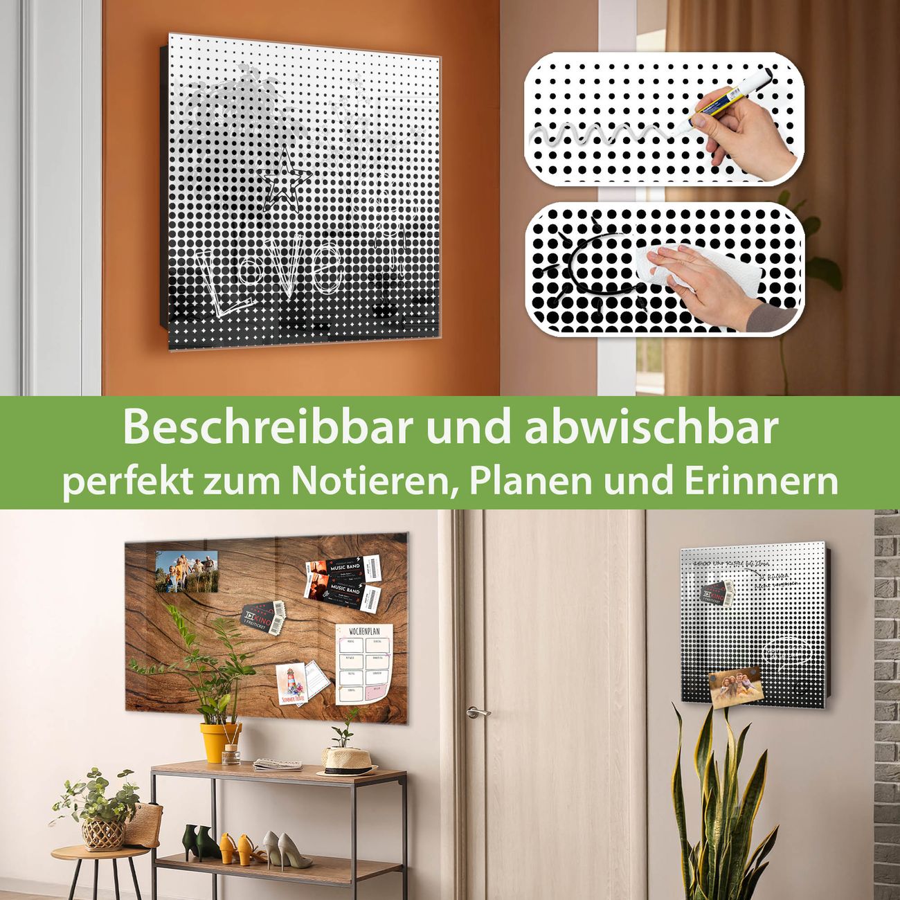 ✅ Magnetisch und mit Kreidestift beschreibbar, gehärtetes Glas, links angeschlagene TürOrdnung und Design in einem