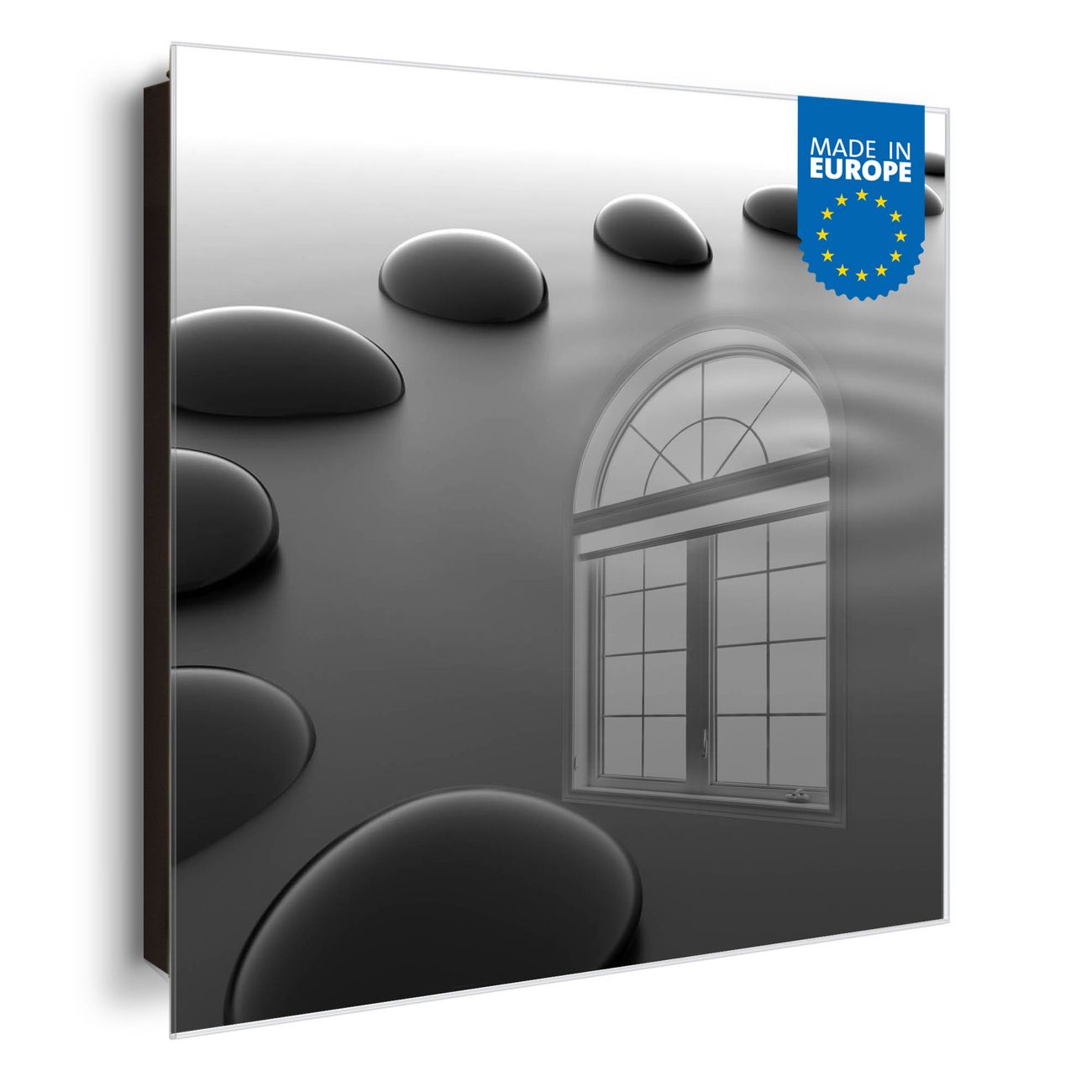 Bringe Ordnung und Eleganz in deinen Eingangsbereich mit dem banjado Schlüsselkasten Motiv Motiv Schwarze Steine. Die moderne Schlüsselbox kombiniert funktionales Design mit hochwertiger Verarbeitung und wird so zu einem echten Hingucker in Flur, Büro oder Ferienwohnung. ✅ Stilvolle Schlüsselaufbewahrung mit Glasfront im Motiv Motiv Schwarze Steine Der Design-Schlüsselkasten Motiv Motiv Schwarze Steine bietet Platz für bis zu 50 Schlüssel, die auf 5 stabilen Reihen mit je 10 Haken übersichtlich verstaut werden. Mit seinen kompakten Maßen von 30 x 30 x 5 cm passt die Schlüsselbox perfekt auch in kleinere Räume. Der schwarz lackierte Stahlkorpus mit rechts angeschlagenem Türscharnier harmoniert mit der Glasfront und fügt sich nahtlos in jedes Wohnambiente ein. Ob als Schlüsselorganizer für Zuhause oder als praktische Lösung für Büros, Praxen und Gewerbe, der banjado Schlüsselkasten sorgt für Ordnung und Übersicht. Dank der magnetischen, mit Kreidestiften beschreibbaren Glasfront kannst du Notizen anheften oder Termine direkt auf der Oberfläche festhalten. Die Schlüsselbox Motiv Motiv Schwarze Steine zur Wandmontage wird inklusive Befestigungsmaterial geliefert und ist schnell angebracht. So hast du deine Schlüssel jederzeit griffbereit und zugleich stilvoll verstaut. Mit diesem banjado Schlüsselkasten Motiv Motiv Schwarze Steine kombinierst du praktische Aufbewahrung mit stilvollem Wohndesign. Ob privat oder geschäftlich, die Schlüsselbox sorgt für mehr Ordnung, Übersicht und ein wohnliches Ambiente.Vorteile im Überblick