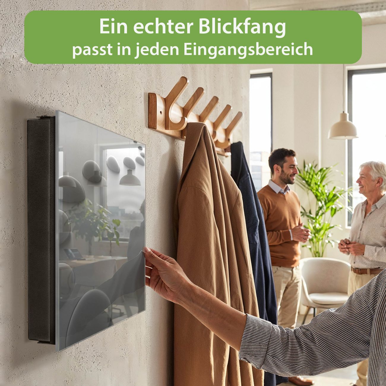 ✅ Magnetisch und mit Kreidestift beschreibbar, gehärtetes Glas, rechts angeschlagene TürOrdnung und Design in einem