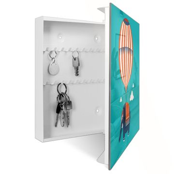 Bringe Ordnung und Eleganz in deinen Eingangsbereich mit dem banjado Schlüsselkasten Motiv Motiv Schwerelos. Die moderne Schlüsselbox kombiniert funktionales Design mit hochwertiger Verarbeitung und wird so zu einem echten Hingucker in Flur, Büro oder Ferienwohnung. ✅ Stilvolle Schlüsselaufbewahrung mit Glasfront im Motiv Motiv Schwerelos Der Design-Schlüsselkasten Motiv Motiv Schwerelos bietet Platz für bis zu 50 Schlüssel, die auf 5 stabilen Reihen mit je 10 Haken übersichtlich verstaut werden. Mit seinen kompakten Maßen von 30 x 30 x 5 cm passt die Schlüsselbox perfekt auch in kleinere Räume. Der weiß lackierte Stahlkorpus mit rechts angeschlagenem Türscharnier harmoniert mit der Glasfront und fügt sich nahtlos in jedes Wohnambiente ein. Ob als Schlüsselorganizer für Zuhause oder als praktische Lösung für Büros, Praxen und Gewerbe, der banjado Schlüsselkasten sorgt für Ordnung und Übersicht. Dank der magnetischen, mit Kreidestiften beschreibbaren Glasfront kannst du Notizen anheften oder Termine direkt auf der Oberfläche festhalten. Die Schlüsselbox Motiv Motiv Schwerelos zur Wandmontage wird inklusive Befestigungsmaterial geliefert und ist schnell angebracht. So hast du deine Schlüssel jederzeit griffbereit und zugleich stilvoll verstaut. Mit diesem banjado Schlüsselkasten Motiv Motiv Schwerelos kombinierst du praktische Aufbewahrung mit stilvollem Wohndesign. Ob privat oder geschäftlich, die Schlüsselbox sorgt für mehr Ordnung, Übersicht und ein wohnliches Ambiente.Vorteile im Überblick