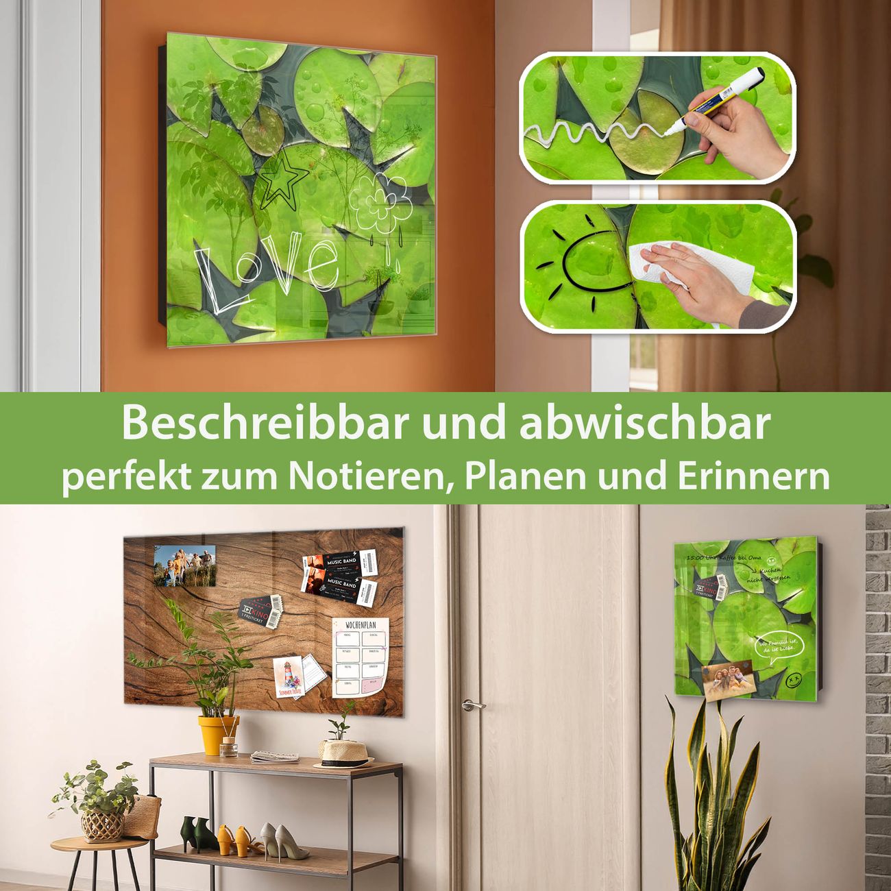 ✅ Magnetisch und mit Kreidestift beschreibbar, gehärtetes Glas, rechts angeschlagene TürOrdnung und Design in einem