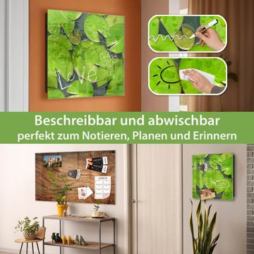 Bringe Ordnung und Eleganz in deinen Eingangsbereich mit dem banjado Schlüsselkasten Motiv Motiv Seerosenblätter. Die moderne Schlüsselbox kombiniert funktionales Design mit hochwertiger Verarbeitung und wird so zu einem echten Hingucker in Flur, Büro oder Ferienwohnung. ✅ Stilvolle Schlüsselaufbewahrung mit Glasfront im Motiv Motiv Seerosenblätter Der Design-Schlüsselkasten Motiv Motiv Seerosenblätter bietet Platz für bis zu 50 Schlüssel, die auf 5 stabilen Reihen mit je 10 Haken übersichtlich verstaut werden. Mit seinen kompakten Maßen von 30 x 30 x 5 cm passt die Schlüsselbox perfekt auch in kleinere Räume. Der schwarz lackierte Stahlkorpus mit rechts angeschlagenem Türscharnier harmoniert mit der Glasfront und fügt sich nahtlos in jedes Wohnambiente ein. Ob als Schlüsselorganizer für Zuhause oder als praktische Lösung für Büros, Praxen und Gewerbe, der banjado Schlüsselkasten sorgt für Ordnung und Übersicht. Dank der magnetischen, mit Kreidestiften beschreibbaren Glasfront kannst du Notizen anheften oder Termine direkt auf der Oberfläche festhalten. Die Schlüsselbox Motiv Motiv Seerosenblätter zur Wandmontage wird inklusive Befestigungsmaterial geliefert und ist schnell angebracht. So hast du deine Schlüssel jederzeit griffbereit und zugleich stilvoll verstaut. Mit diesem banjado Schlüsselkasten Motiv Motiv Seerosenblätter kombinierst du praktische Aufbewahrung mit stilvollem Wohndesign. Ob privat oder geschäftlich, die Schlüsselbox sorgt für mehr Ordnung, Übersicht und ein wohnliches Ambiente.Vorteile im Überblick