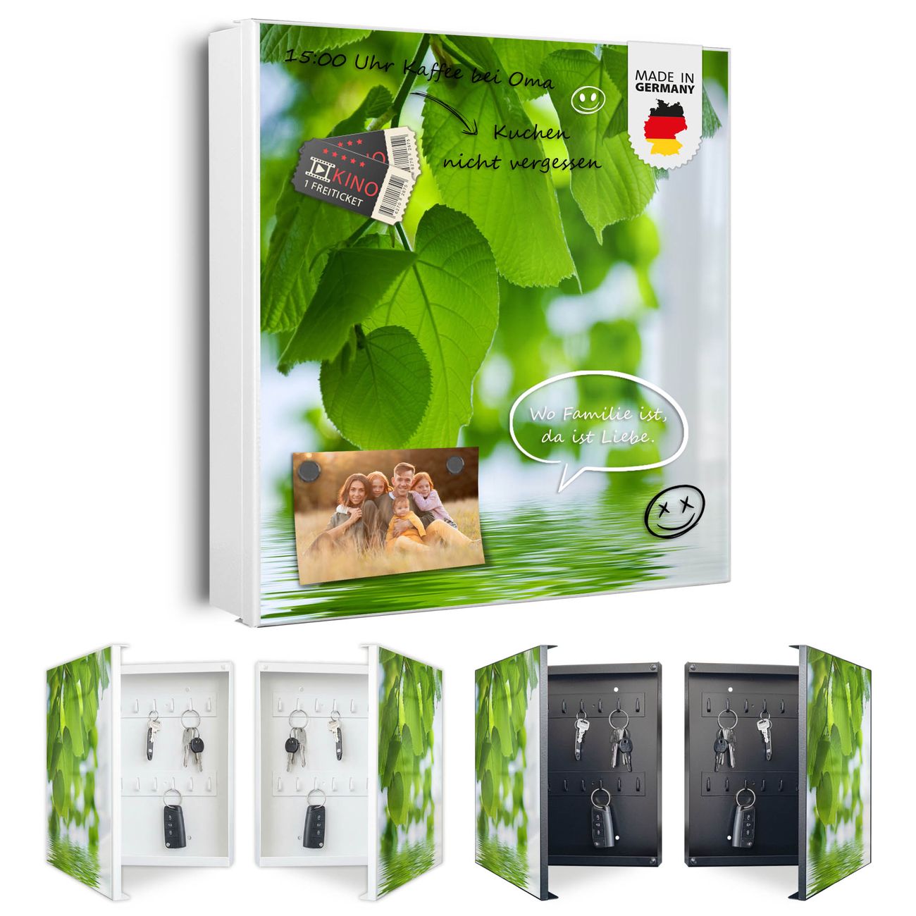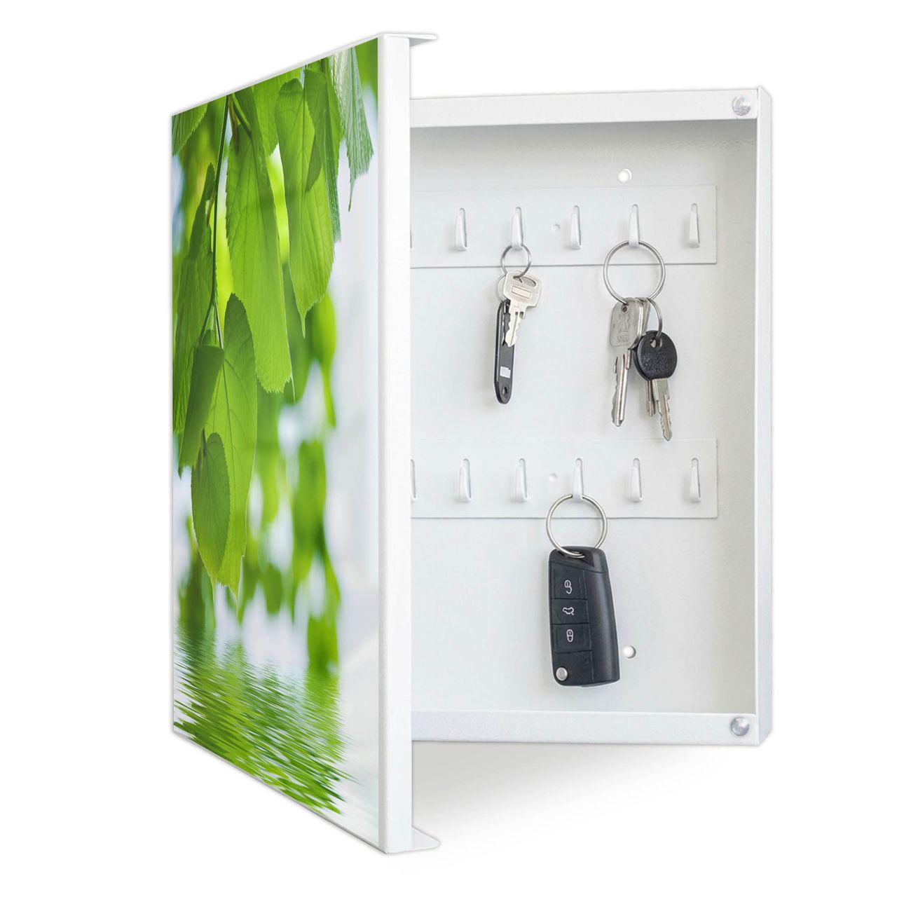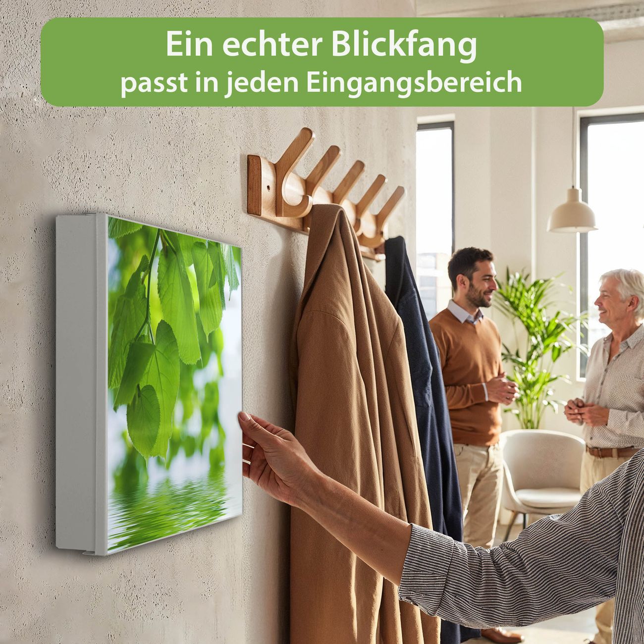 Bringe Ordnung und Eleganz in deinen Eingangsbereich mit dem banjado Schlüsselkasten Motiv Motiv Seichtes Wasser. Die moderne Schlüsselbox kombiniert funktionales Design mit hochwertiger Verarbeitung und wird so zu einem echten Hingucker in Flur, Büro oder Ferienwohnung. ✅ Stilvolle Schlüsselaufbewahrung mit Motiv Motiv Seichtes Wasser Der Design-Schlüsselkasten Motiv Motiv Seichtes Wasser bietet Platz für bis zu 32 Schlüssel, die auf 4 stabilen Reihen mit je 8 Haken übersichtlich verstaut werden. Mit seinen kompakten Maßen von 30 x 30 x 5 cm passt die Schlüsselbox perfekt auch in kleinere Räume. Der weiß lackierte Stahlkorpus mit links angeschlagenem Türscharnier harmoniert mit gedruckten Folie auf der Front und fügt sich nahtlos in jedes Wohnambiente ein. Ob als Schlüsselorganizer für Zuhause oder als praktische Lösung für Büros, Praxen und Gewerbe, der banjado Schlüsselkasten sorgt für Ordnung und Übersicht. Dank der magnetischen, mit Kreidestiften beschreibbaren Folie auf der Front kannst du Notizen anheften oder Termine direkt auf der Oberfläche festhalten. Die Schlüsselbox Motiv Motiv Seichtes Wasser zur Wandmontage wird inklusive Befestigungsmaterial geliefert und ist schnell angebracht. So hast du deine Schlüssel jederzeit griffbereit und zugleich stilvoll verstaut. Mit diesem banjado Schlüsselkasten Motiv Motiv Seichtes Wasser kombinierst du praktische Aufbewahrung mit stilvollem Wohndesign. Ob privat oder geschäftlich, die Schlüsselbox sorgt für mehr Ordnung, Übersicht und ein wohnliches Ambiente.Vorteile im Überblick