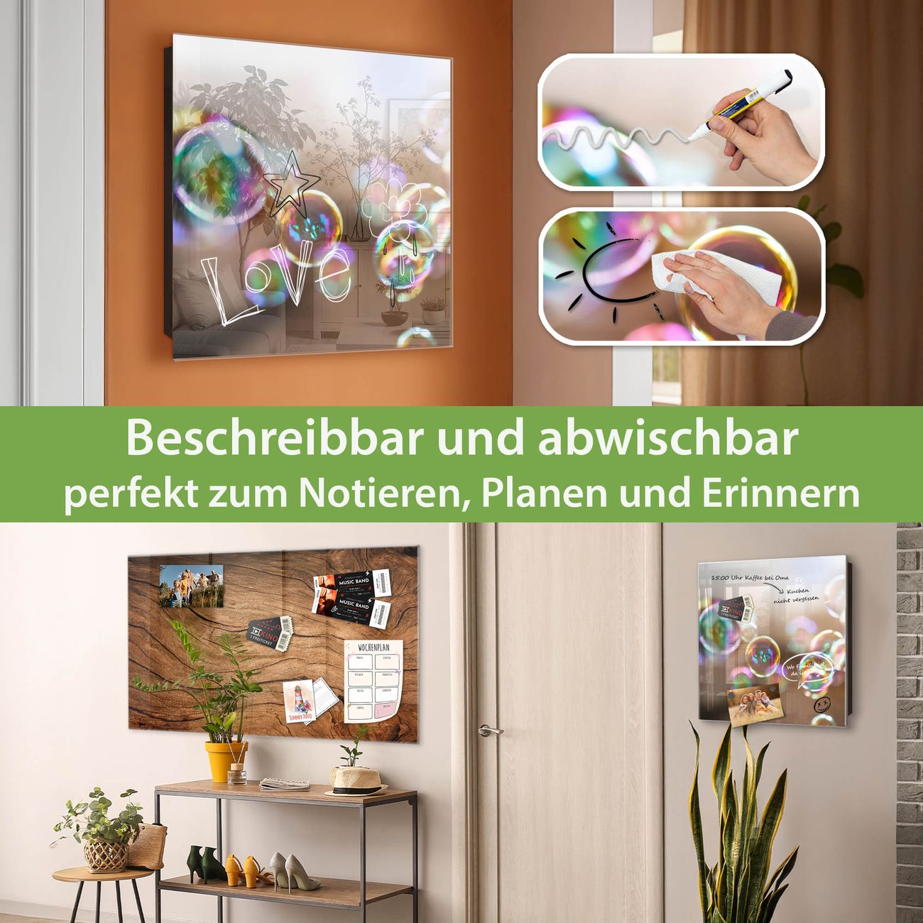 ✅ Magnetisch und mit Kreidestift beschreibbar, gehärtetes Glas, rechts angeschlagene TürOrdnung und Design in einem