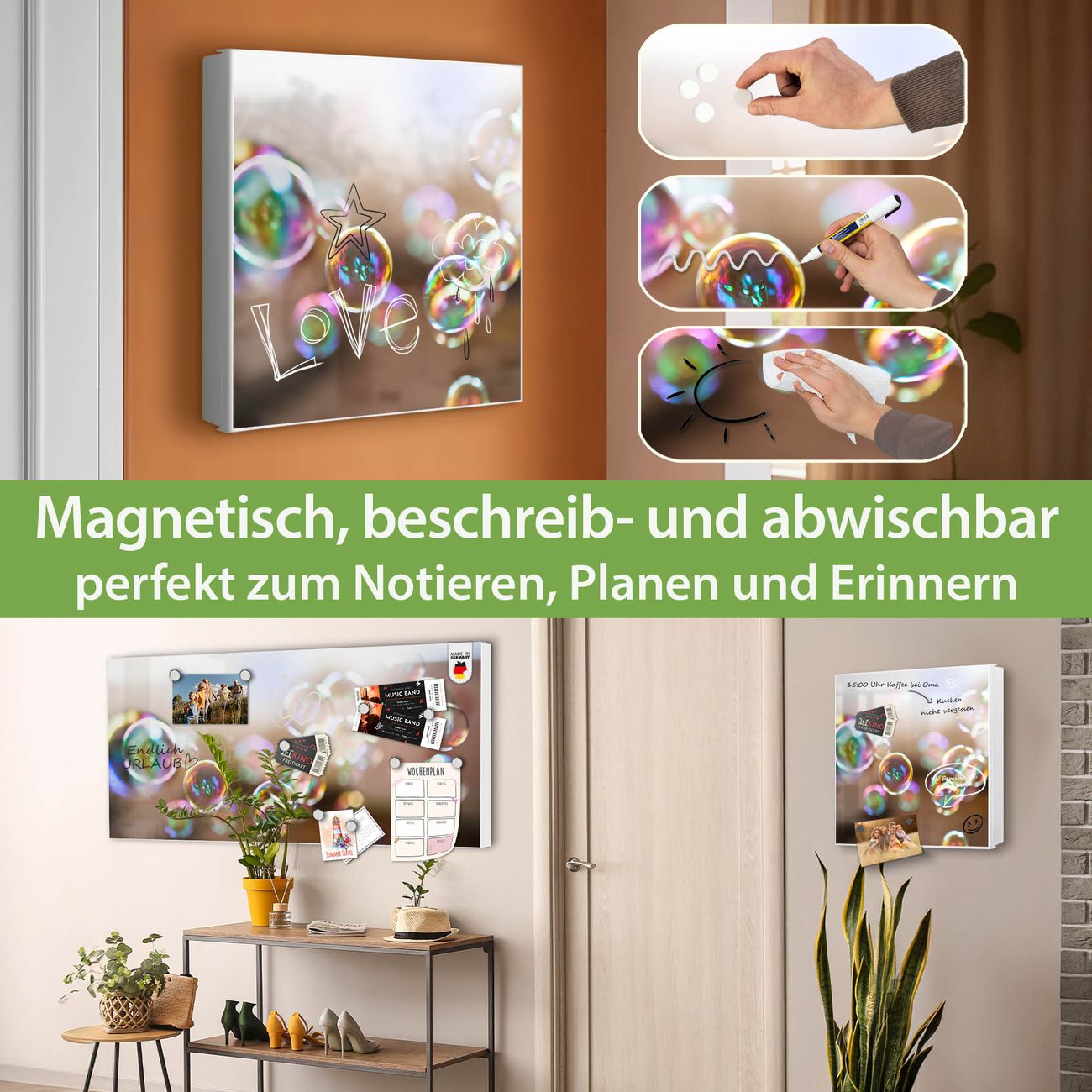 ✅ Magnetisch und mit Kreidestift beschreibbar, rechts angeschlagene TürOrdnung und Design in einem
