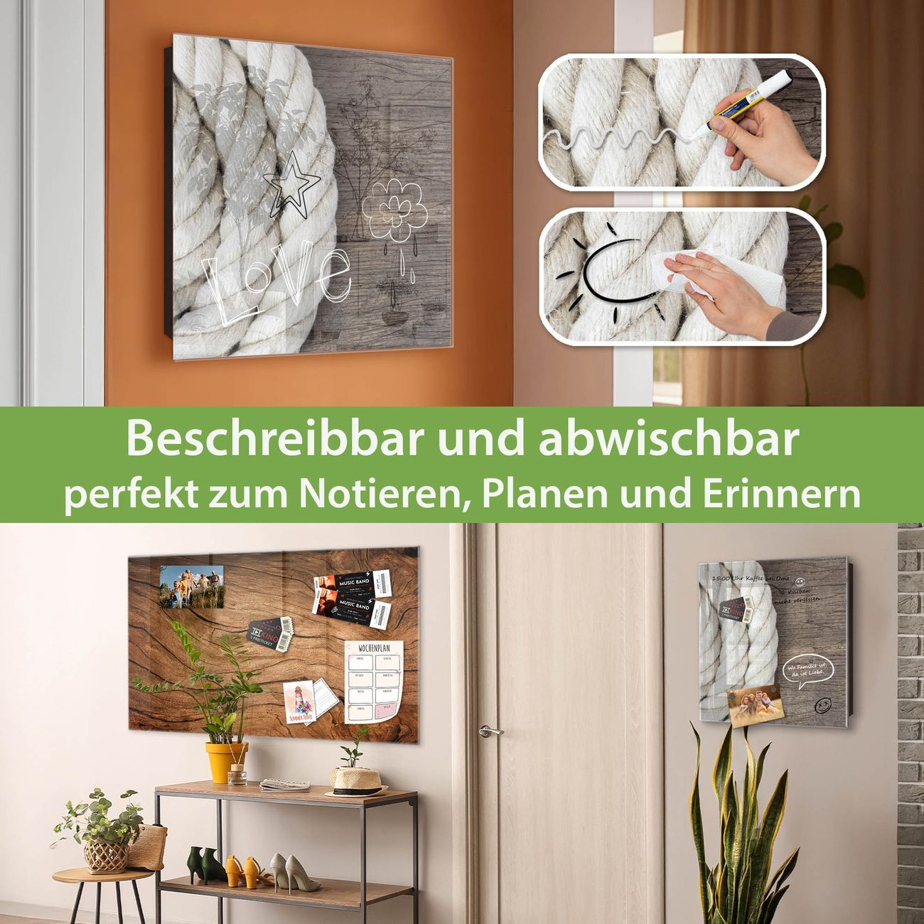 ✅ Magnetisch und mit Kreidestift beschreibbar, gehärtetes Glas, links angeschlagene TürOrdnung und Design in einem