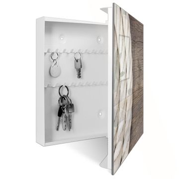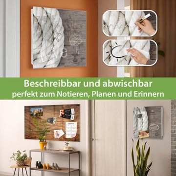 Bringe Ordnung und Eleganz in deinen Eingangsbereich mit dem banjado Schlüsselkasten Motiv Motiv Seil. Die moderne Schlüsselbox kombiniert funktionales Design mit hochwertiger Verarbeitung und wird so zu einem echten Hingucker in Flur, Büro oder Ferienwohnung. ✅ Stilvolle Schlüsselaufbewahrung mit Glasfront im Motiv Motiv Seil Der Design-Schlüsselkasten Motiv Motiv Seil bietet Platz für bis zu 50 Schlüssel, die auf 5 stabilen Reihen mit je 10 Haken übersichtlich verstaut werden. Mit seinen kompakten Maßen von 30 x 30 x 5 cm passt die Schlüsselbox perfekt auch in kleinere Räume. Der weiß lackierte Stahlkorpus mit rechts angeschlagenem Türscharnier harmoniert mit der Glasfront und fügt sich nahtlos in jedes Wohnambiente ein. Ob als Schlüsselorganizer für Zuhause oder als praktische Lösung für Büros, Praxen und Gewerbe, der banjado Schlüsselkasten sorgt für Ordnung und Übersicht. Dank der magnetischen, mit Kreidestiften beschreibbaren Glasfront kannst du Notizen anheften oder Termine direkt auf der Oberfläche festhalten. Die Schlüsselbox Motiv Motiv Seil zur Wandmontage wird inklusive Befestigungsmaterial geliefert und ist schnell angebracht. So hast du deine Schlüssel jederzeit griffbereit und zugleich stilvoll verstaut. Mit diesem banjado Schlüsselkasten Motiv Motiv Seil kombinierst du praktische Aufbewahrung mit stilvollem Wohndesign. Ob privat oder geschäftlich, die Schlüsselbox sorgt für mehr Ordnung, Übersicht und ein wohnliches Ambiente.Vorteile im Überblick