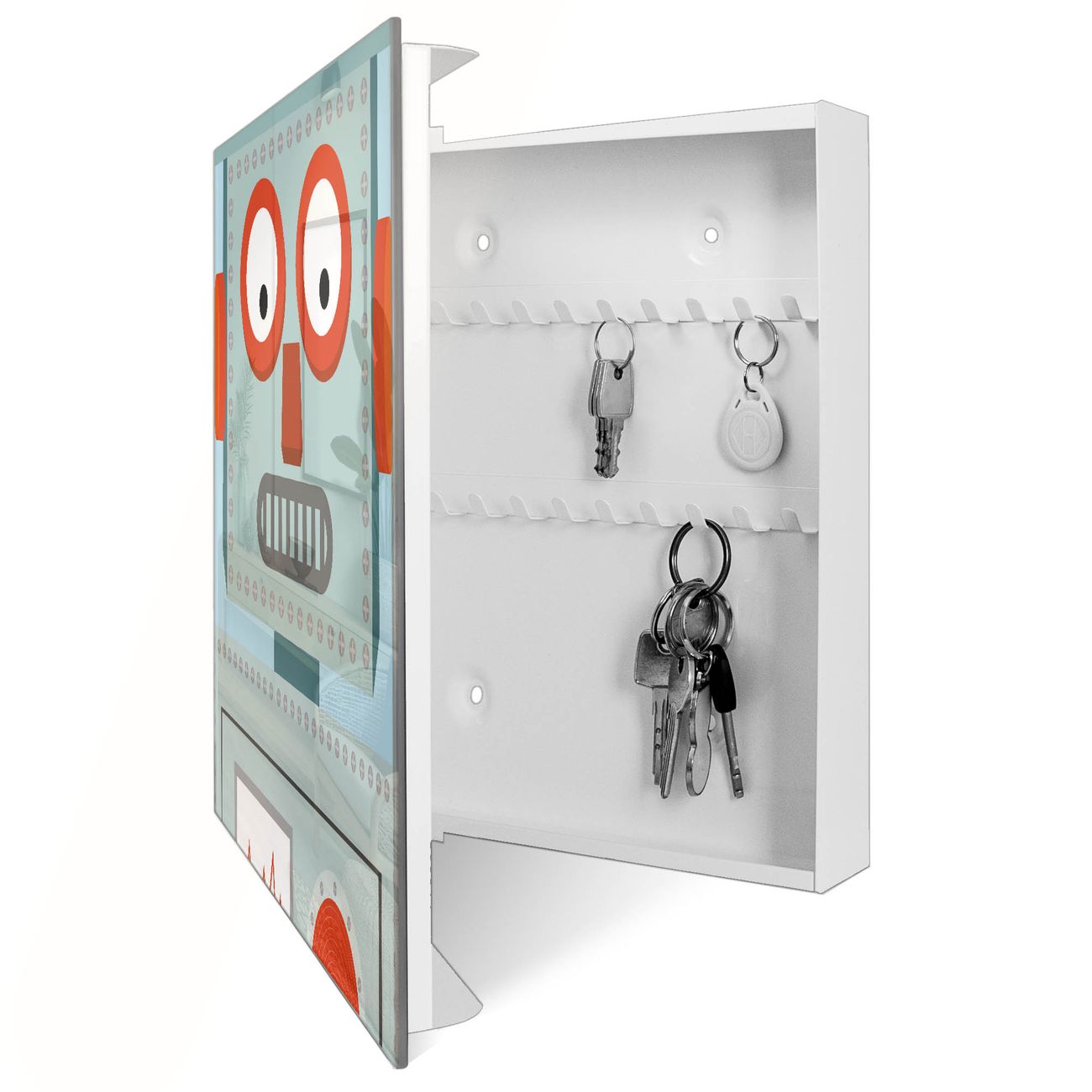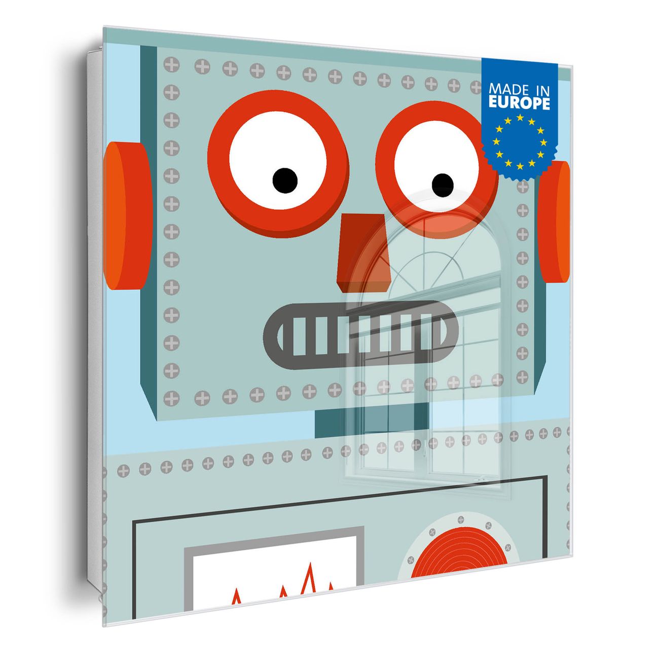 Bringe Ordnung und Eleganz in deinen Eingangsbereich mit dem banjado Schlüsselkasten Motiv Motiv Shocked Robot. Die moderne Schlüsselbox kombiniert funktionales Design mit hochwertiger Verarbeitung und wird so zu einem echten Hingucker in Flur, Büro oder Ferienwohnung. ✅ Stilvolle Schlüsselaufbewahrung mit Glasfront im Motiv Motiv Shocked Robot Der Design-Schlüsselkasten Motiv Motiv Shocked Robot bietet Platz für bis zu 50 Schlüssel, die auf 5 stabilen Reihen mit je 10 Haken übersichtlich verstaut werden. Mit seinen kompakten Maßen von 30 x 30 x 5 cm passt die Schlüsselbox perfekt auch in kleinere Räume. Der weiß lackierte Stahlkorpus mit rechts angeschlagenem Türscharnier harmoniert mit der Glasfront und fügt sich nahtlos in jedes Wohnambiente ein. Ob als Schlüsselorganizer für Zuhause oder als praktische Lösung für Büros, Praxen und Gewerbe, der banjado Schlüsselkasten sorgt für Ordnung und Übersicht. Dank der magnetischen, mit Kreidestiften beschreibbaren Glasfront kannst du Notizen anheften oder Termine direkt auf der Oberfläche festhalten. Die Schlüsselbox Motiv Motiv Shocked Robot zur Wandmontage wird inklusive Befestigungsmaterial geliefert und ist schnell angebracht. So hast du deine Schlüssel jederzeit griffbereit und zugleich stilvoll verstaut. Mit diesem banjado Schlüsselkasten Motiv Motiv Shocked Robot kombinierst du praktische Aufbewahrung mit stilvollem Wohndesign. Ob privat oder geschäftlich, die Schlüsselbox sorgt für mehr Ordnung, Übersicht und ein wohnliches Ambiente.Vorteile im Überblick