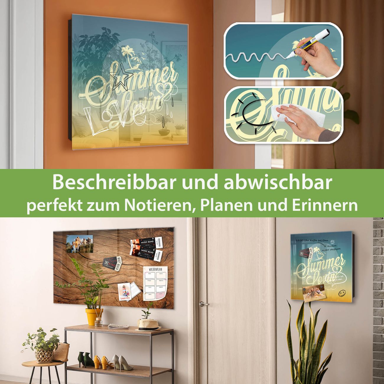 ✅ Magnetisch und mit Kreidestift beschreibbar, gehärtetes Glas, rechts angeschlagene TürOrdnung und Design in einem
