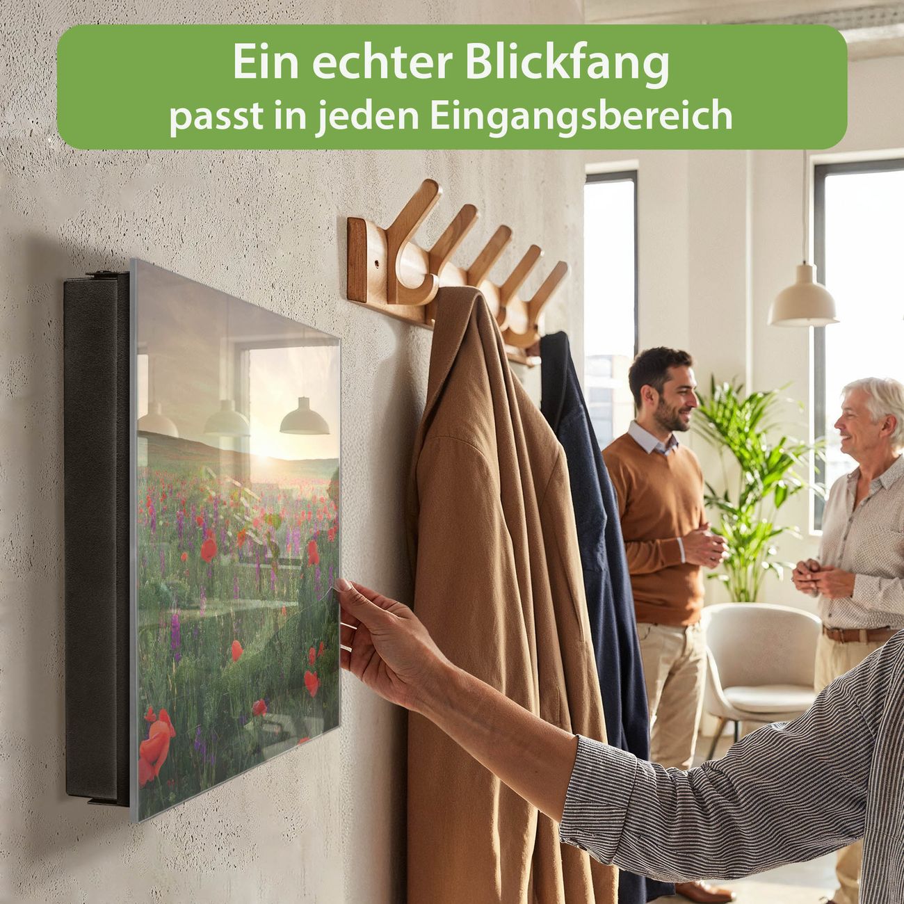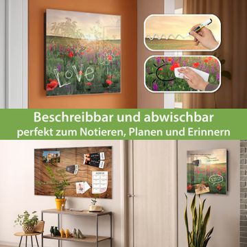 Bringe Ordnung und Eleganz in deinen Eingangsbereich mit dem banjado Schlüsselkasten Motiv Motiv Sommerfeld. Die moderne Schlüsselbox kombiniert funktionales Design mit hochwertiger Verarbeitung und wird so zu einem echten Hingucker in Flur, Büro oder Ferienwohnung. ✅ Stilvolle Schlüsselaufbewahrung mit Glasfront im Motiv Motiv Sommerfeld Der Design-Schlüsselkasten Motiv Motiv Sommerfeld bietet Platz für bis zu 50 Schlüssel, die auf 5 stabilen Reihen mit je 10 Haken übersichtlich verstaut werden. Mit seinen kompakten Maßen von 30 x 30 x 5 cm passt die Schlüsselbox perfekt auch in kleinere Räume. Der schwarz lackierte Stahlkorpus mit rechts angeschlagenem Türscharnier harmoniert mit der Glasfront und fügt sich nahtlos in jedes Wohnambiente ein. Ob als Schlüsselorganizer für Zuhause oder als praktische Lösung für Büros, Praxen und Gewerbe, der banjado Schlüsselkasten sorgt für Ordnung und Übersicht. Dank der magnetischen, mit Kreidestiften beschreibbaren Glasfront kannst du Notizen anheften oder Termine direkt auf der Oberfläche festhalten. Die Schlüsselbox Motiv Motiv Sommerfeld zur Wandmontage wird inklusive Befestigungsmaterial geliefert und ist schnell angebracht. So hast du deine Schlüssel jederzeit griffbereit und zugleich stilvoll verstaut. Mit diesem banjado Schlüsselkasten Motiv Motiv Sommerfeld kombinierst du praktische Aufbewahrung mit stilvollem Wohndesign. Ob privat oder geschäftlich, die Schlüsselbox sorgt für mehr Ordnung, Übersicht und ein wohnliches Ambiente.Vorteile im Überblick