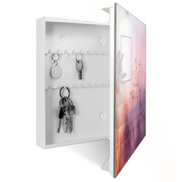 Bringe Ordnung und Eleganz in deinen Eingangsbereich mit dem banjado Schlüsselkasten Motiv Motiv Sommergras. Die moderne Schlüsselbox kombiniert funktionales Design mit hochwertiger Verarbeitung und wird so zu einem echten Hingucker in Flur, Büro oder Ferienwohnung. ✅ Stilvolle Schlüsselaufbewahrung mit Glasfront im Motiv Motiv Sommergras Der Design-Schlüsselkasten Motiv Motiv Sommergras bietet Platz für bis zu 50 Schlüssel, die auf 5 stabilen Reihen mit je 10 Haken übersichtlich verstaut werden. Mit seinen kompakten Maßen von 30 x 30 x 5 cm passt die Schlüsselbox perfekt auch in kleinere Räume. Der weiß lackierte Stahlkorpus mit rechts angeschlagenem Türscharnier harmoniert mit der Glasfront und fügt sich nahtlos in jedes Wohnambiente ein. Ob als Schlüsselorganizer für Zuhause oder als praktische Lösung für Büros, Praxen und Gewerbe, der banjado Schlüsselkasten sorgt für Ordnung und Übersicht. Dank der magnetischen, mit Kreidestiften beschreibbaren Glasfront kannst du Notizen anheften oder Termine direkt auf der Oberfläche festhalten. Die Schlüsselbox Motiv Motiv Sommergras zur Wandmontage wird inklusive Befestigungsmaterial geliefert und ist schnell angebracht. So hast du deine Schlüssel jederzeit griffbereit und zugleich stilvoll verstaut. Mit diesem banjado Schlüsselkasten Motiv Motiv Sommergras kombinierst du praktische Aufbewahrung mit stilvollem Wohndesign. Ob privat oder geschäftlich, die Schlüsselbox sorgt für mehr Ordnung, Übersicht und ein wohnliches Ambiente.Vorteile im Überblick