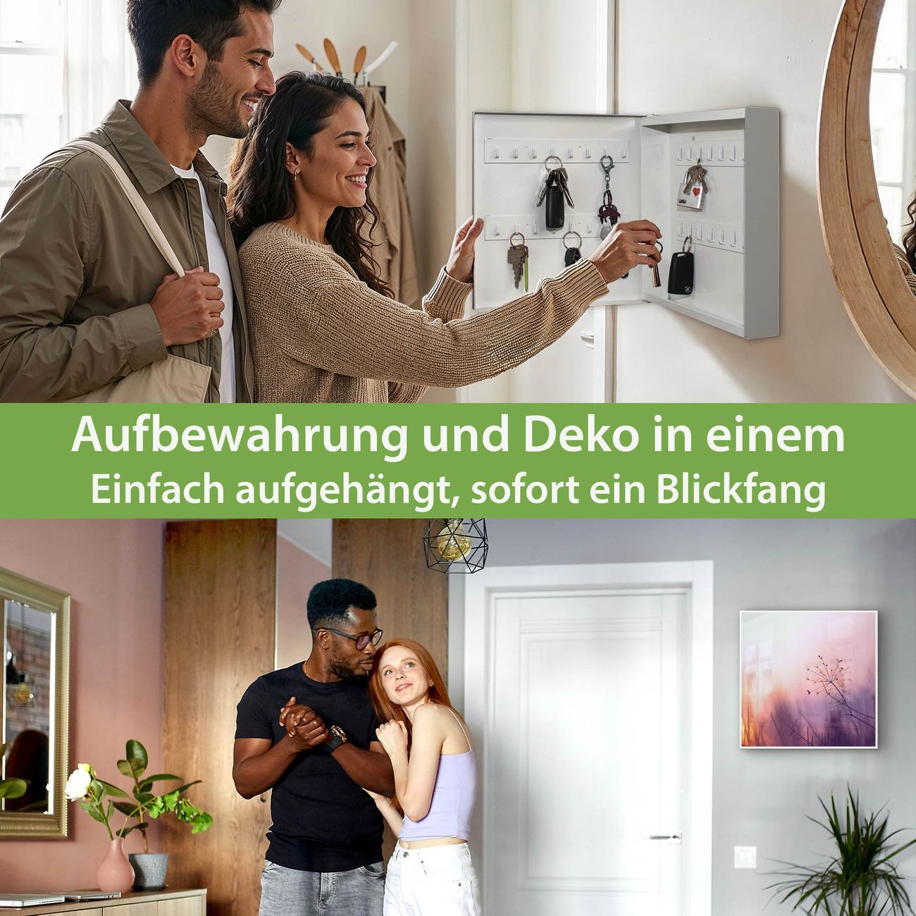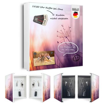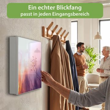 Bringe Ordnung und Eleganz in deinen Eingangsbereich mit dem banjado Schlüsselkasten Motiv Motiv Sommergras. Die moderne Schlüsselbox kombiniert funktionales Design mit hochwertiger Verarbeitung und wird so zu einem echten Hingucker in Flur, Büro oder Ferienwohnung. ✅ Stilvolle Schlüsselaufbewahrung mit Motiv Motiv Sommergras Der Design-Schlüsselkasten Motiv Motiv Sommergras bietet Platz für bis zu 32 Schlüssel, die auf 4 stabilen Reihen mit je 8 Haken übersichtlich verstaut werden. Mit seinen kompakten Maßen von 30 x 30 x 5 cm passt die Schlüsselbox perfekt auch in kleinere Räume. Der weiß lackierte Stahlkorpus mit links angeschlagenem Türscharnier harmoniert mit gedruckten Folie auf der Front und fügt sich nahtlos in jedes Wohnambiente ein. Ob als Schlüsselorganizer für Zuhause oder als praktische Lösung für Büros, Praxen und Gewerbe, der banjado Schlüsselkasten sorgt für Ordnung und Übersicht. Dank der magnetischen, mit Kreidestiften beschreibbaren Folie auf der Front kannst du Notizen anheften oder Termine direkt auf der Oberfläche festhalten. Die Schlüsselbox Motiv Motiv Sommergras zur Wandmontage wird inklusive Befestigungsmaterial geliefert und ist schnell angebracht. So hast du deine Schlüssel jederzeit griffbereit und zugleich stilvoll verstaut. Mit diesem banjado Schlüsselkasten Motiv Motiv Sommergras kombinierst du praktische Aufbewahrung mit stilvollem Wohndesign. Ob privat oder geschäftlich, die Schlüsselbox sorgt für mehr Ordnung, Übersicht und ein wohnliches Ambiente.Vorteile im Überblick