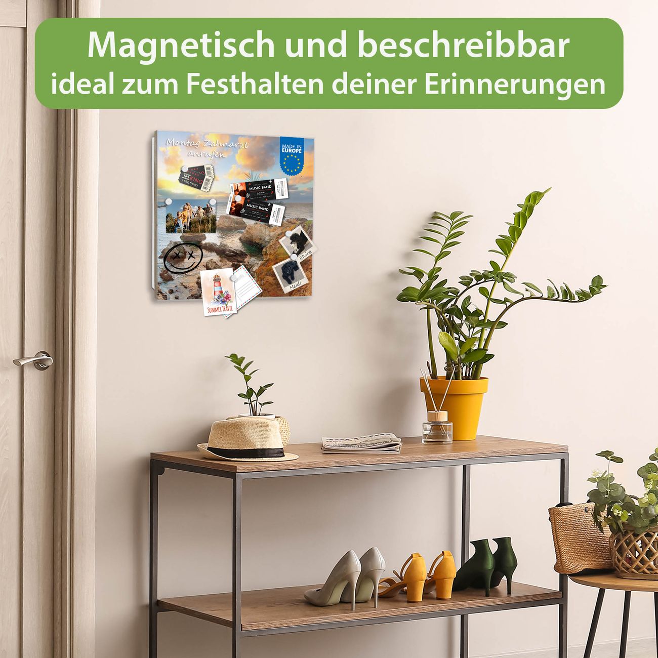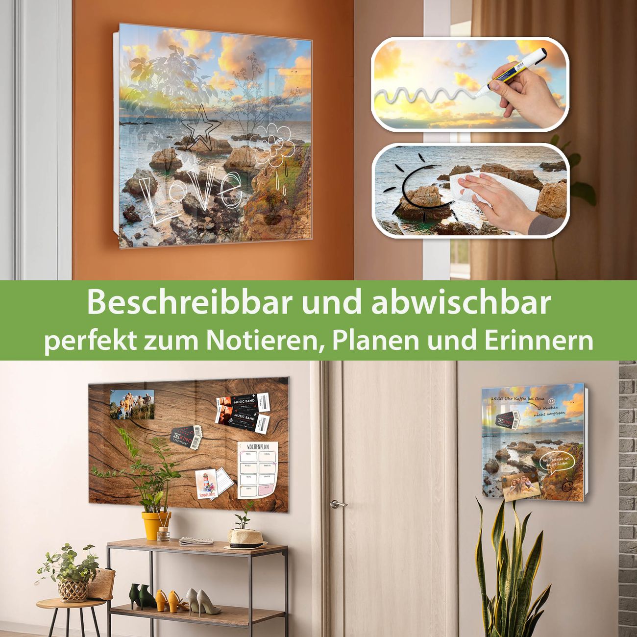 ✅ Magnetisch und mit Kreidestift beschreibbar, gehärtetes Glas, links angeschlagene TürOrdnung und Design in einem