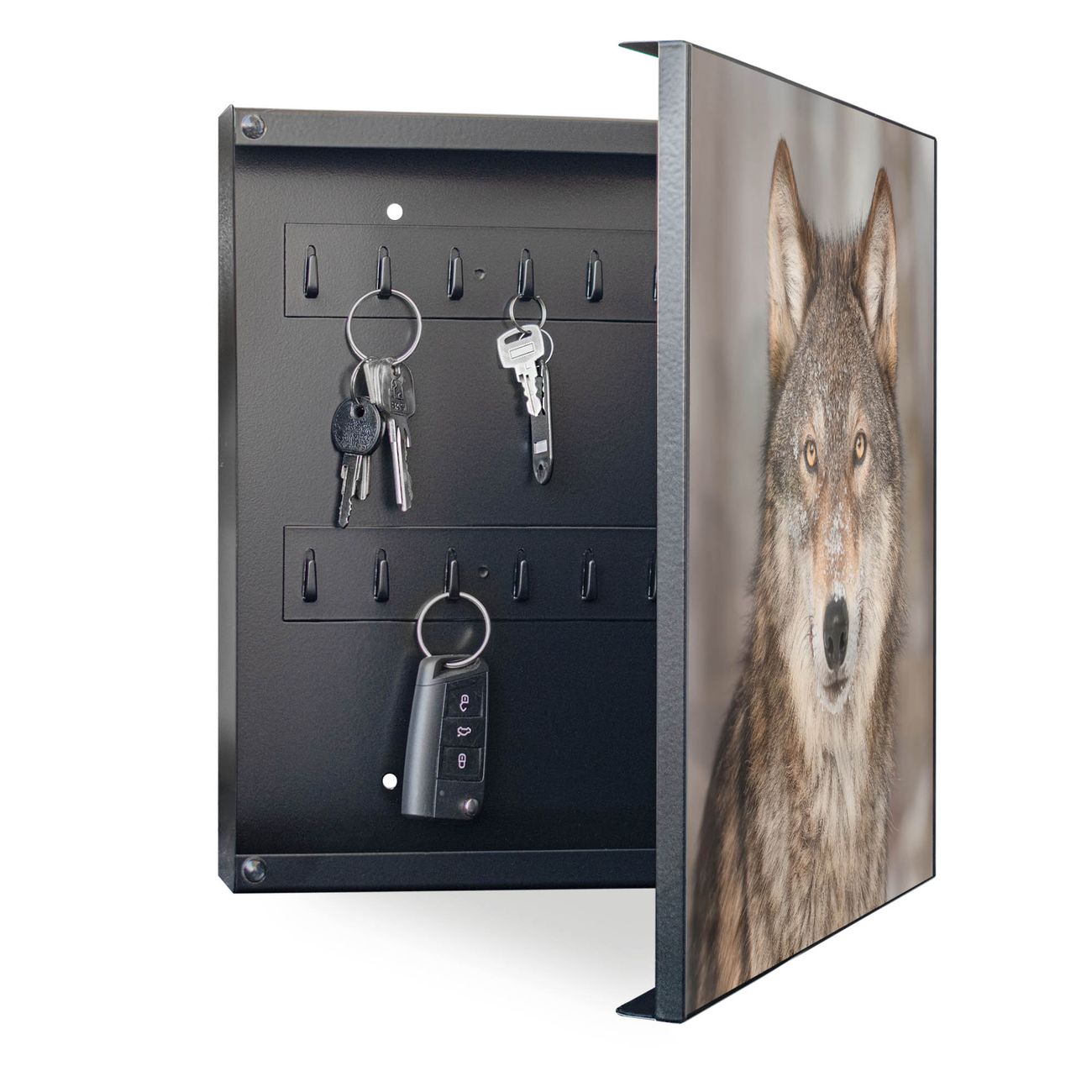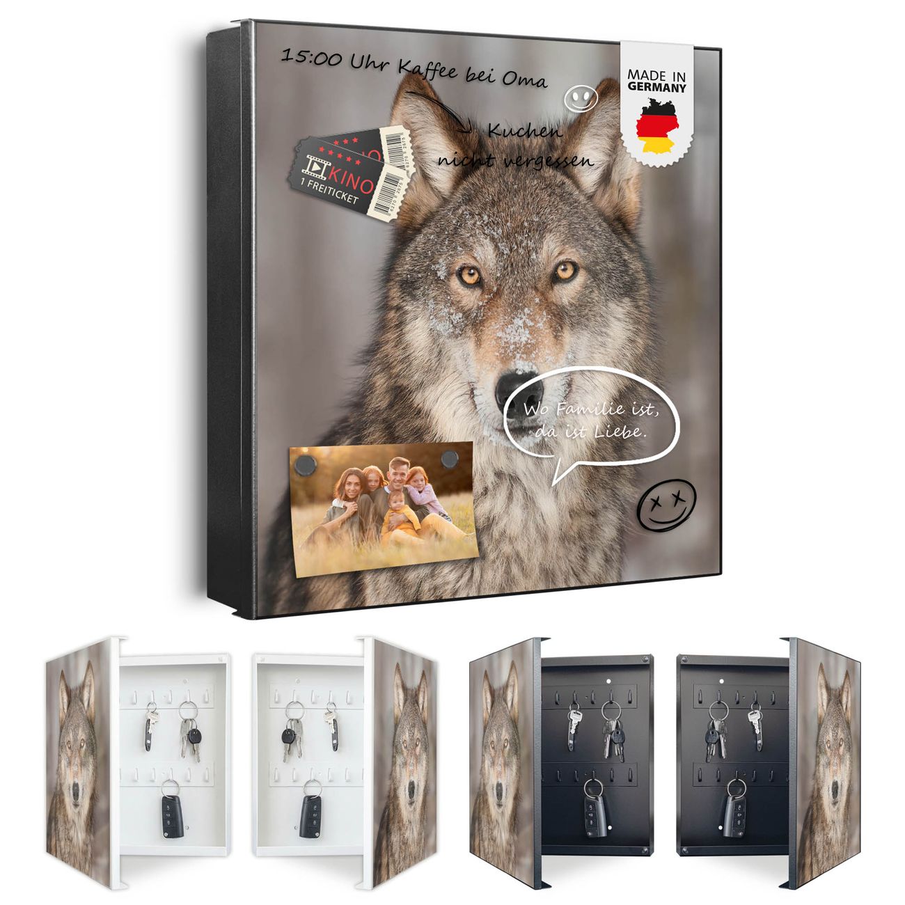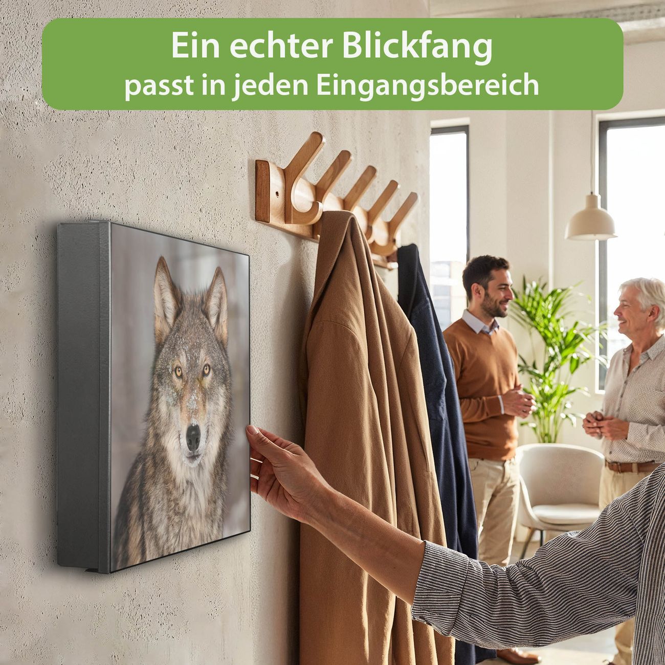 Bringe Ordnung und Eleganz in deinen Eingangsbereich mit dem banjado Schlüsselkasten Motiv Motiv Soraya. Die moderne Schlüsselbox kombiniert funktionales Design mit hochwertiger Verarbeitung und wird so zu einem echten Hingucker in Flur, Büro oder Ferienwohnung. ✅ Stilvolle Schlüsselaufbewahrung mit Motiv Motiv Soraya Der Design-Schlüsselkasten Motiv Motiv Soraya bietet Platz für bis zu 32 Schlüssel, die auf 4 stabilen Reihen mit je 8 Haken übersichtlich verstaut werden. Mit seinen kompakten Maßen von 30 x 30 x 5 cm passt die Schlüsselbox perfekt auch in kleinere Räume. Der schwarz lackierte Stahlkorpus mit rechts angeschlagenem Türscharnier harmoniert mit gedruckten Folie auf der Front und fügt sich nahtlos in jedes Wohnambiente ein. Ob als Schlüsselorganizer für Zuhause oder als praktische Lösung für Büros, Praxen und Gewerbe, der banjado Schlüsselkasten sorgt für Ordnung und Übersicht. Dank der magnetischen, mit Kreidestiften beschreibbaren Folie auf der Front kannst du Notizen anheften oder Termine direkt auf der Oberfläche festhalten. Die Schlüsselbox Motiv Motiv Soraya zur Wandmontage wird inklusive Befestigungsmaterial geliefert und ist schnell angebracht. So hast du deine Schlüssel jederzeit griffbereit und zugleich stilvoll verstaut. Mit diesem banjado Schlüsselkasten Motiv Motiv Soraya kombinierst du praktische Aufbewahrung mit stilvollem Wohndesign. Ob privat oder geschäftlich, die Schlüsselbox sorgt für mehr Ordnung, Übersicht und ein wohnliches Ambiente.Vorteile im Überblick