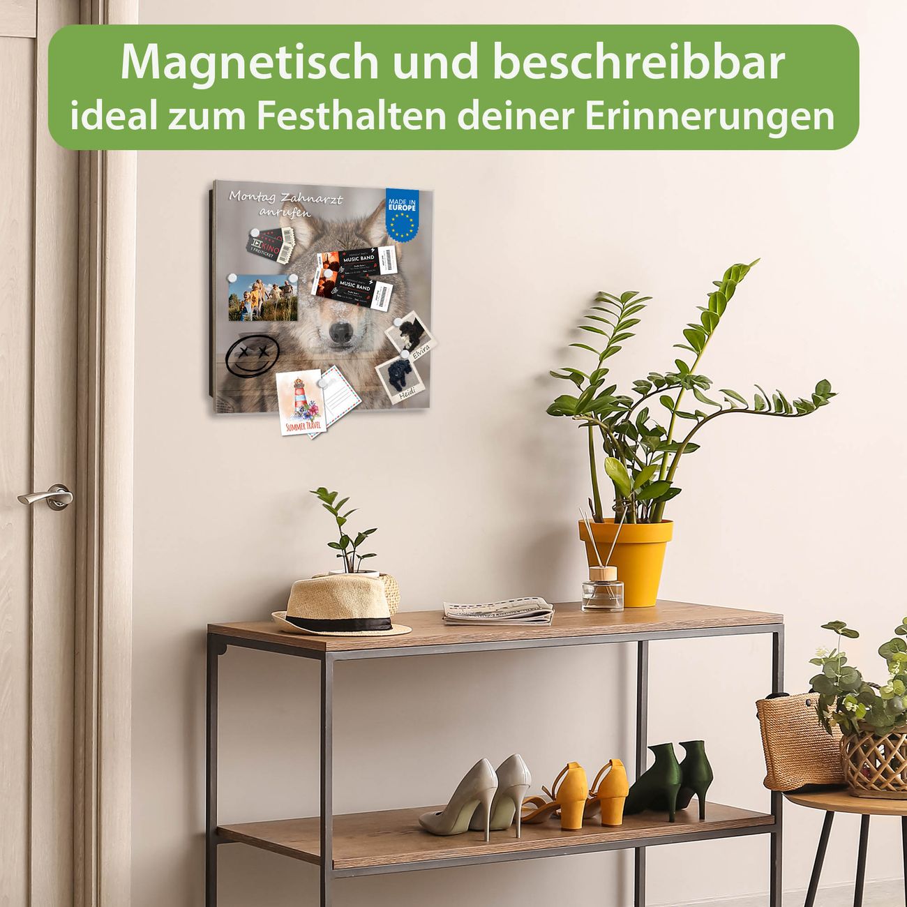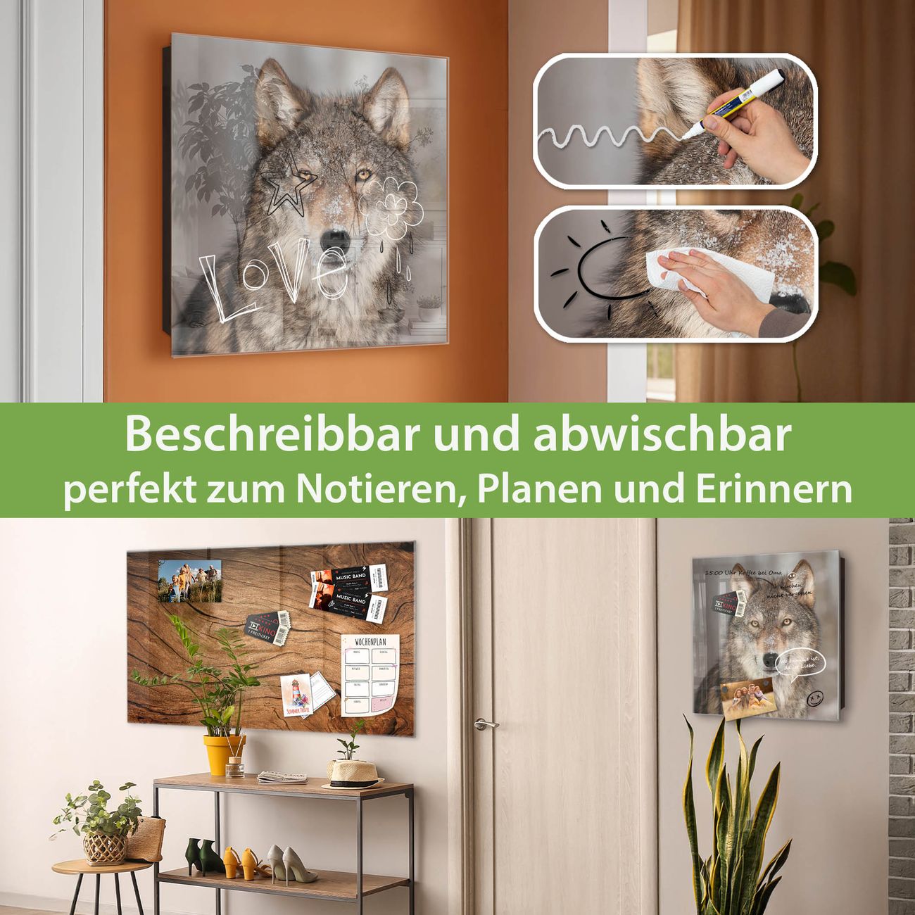 ✅ Magnetisch und mit Kreidestift beschreibbar, gehärtetes Glas, links angeschlagene TürOrdnung und Design in einem