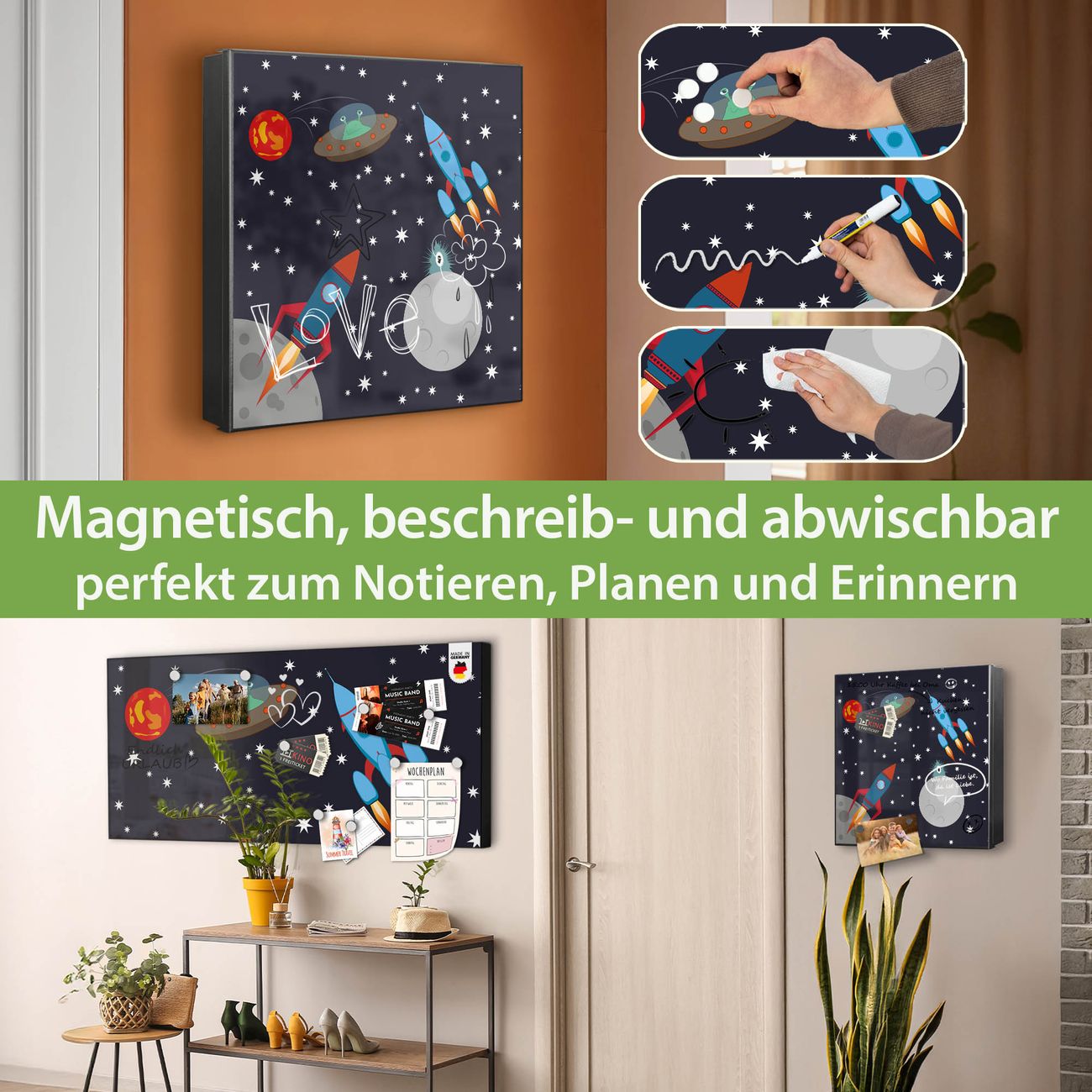 ✅ Magnetisch und mit Kreidestift beschreibbar, rechts angeschlagene TürOrdnung und Design in einem