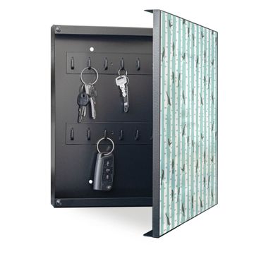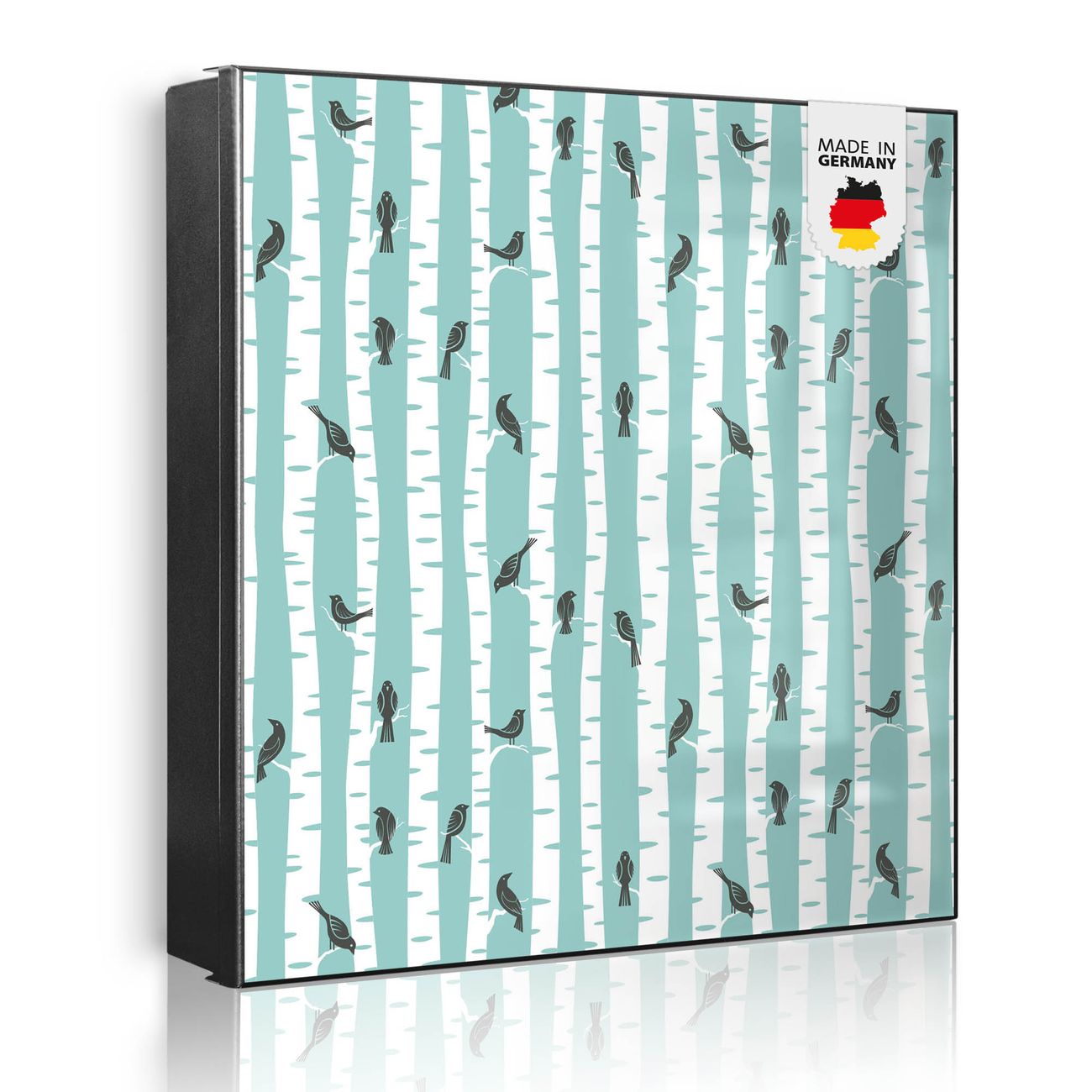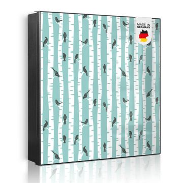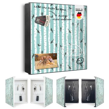 Bringe Ordnung und Eleganz in deinen Eingangsbereich mit dem banjado Schlüsselkasten Motiv Motiv Stare Und Birken. Die moderne Schlüsselbox kombiniert funktionales Design mit hochwertiger Verarbeitung und wird so zu einem echten Hingucker in Flur, Büro oder Ferienwohnung. ✅ Stilvolle Schlüsselaufbewahrung mit Motiv Motiv Stare Und Birken Der Design-Schlüsselkasten Motiv Motiv Stare Und Birken bietet Platz für bis zu 32 Schlüssel, die auf 4 stabilen Reihen mit je 8 Haken übersichtlich verstaut werden. Mit seinen kompakten Maßen von 30 x 30 x 5 cm passt die Schlüsselbox perfekt auch in kleinere Räume. Der schwarz lackierte Stahlkorpus mit rechts angeschlagenem Türscharnier harmoniert mit gedruckten Folie auf der Front und fügt sich nahtlos in jedes Wohnambiente ein. Ob als Schlüsselorganizer für Zuhause oder als praktische Lösung für Büros, Praxen und Gewerbe, der banjado Schlüsselkasten sorgt für Ordnung und Übersicht. Dank der magnetischen, mit Kreidestiften beschreibbaren Folie auf der Front kannst du Notizen anheften oder Termine direkt auf der Oberfläche festhalten. Die Schlüsselbox Motiv Motiv Stare Und Birken zur Wandmontage wird inklusive Befestigungsmaterial geliefert und ist schnell angebracht. So hast du deine Schlüssel jederzeit griffbereit und zugleich stilvoll verstaut. Mit diesem banjado Schlüsselkasten Motiv Motiv Stare Und Birken kombinierst du praktische Aufbewahrung mit stilvollem Wohndesign. Ob privat oder geschäftlich, die Schlüsselbox sorgt für mehr Ordnung, Übersicht und ein wohnliches Ambiente.Vorteile im Überblick