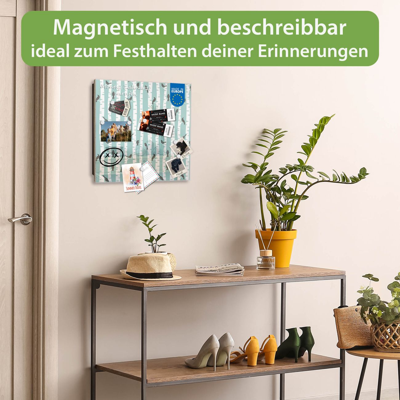 ✅ Magnetisch und mit Kreidestift beschreibbar, gehärtetes Glas, links angeschlagene TürOrdnung und Design in einem