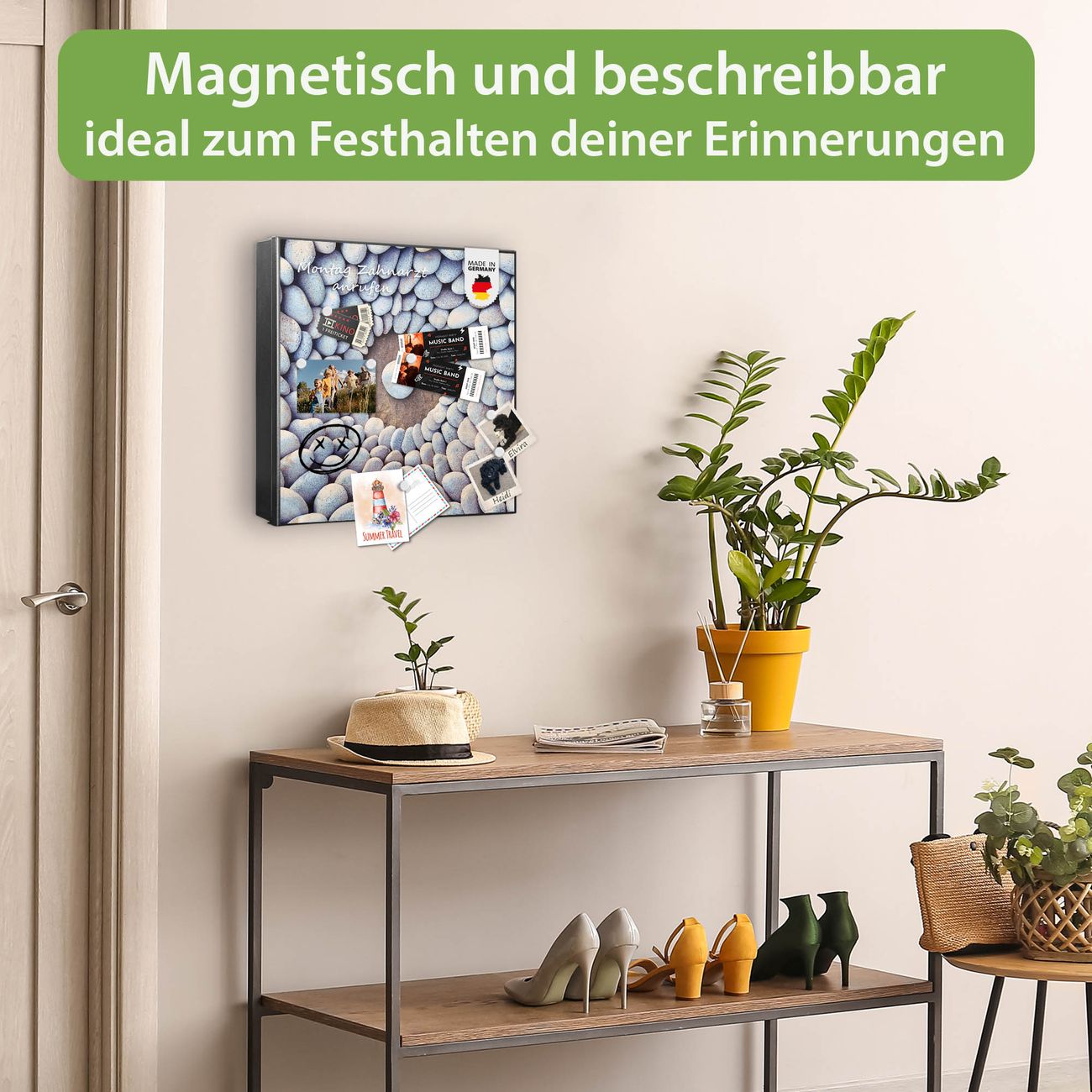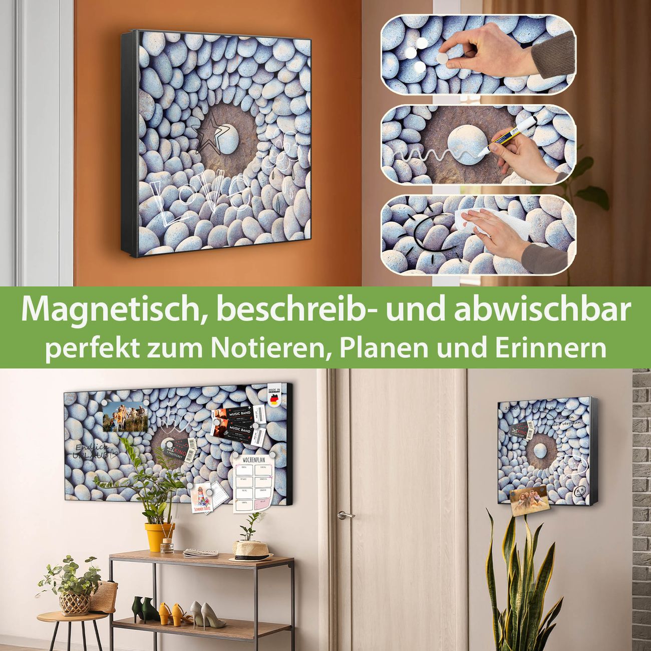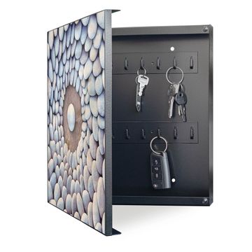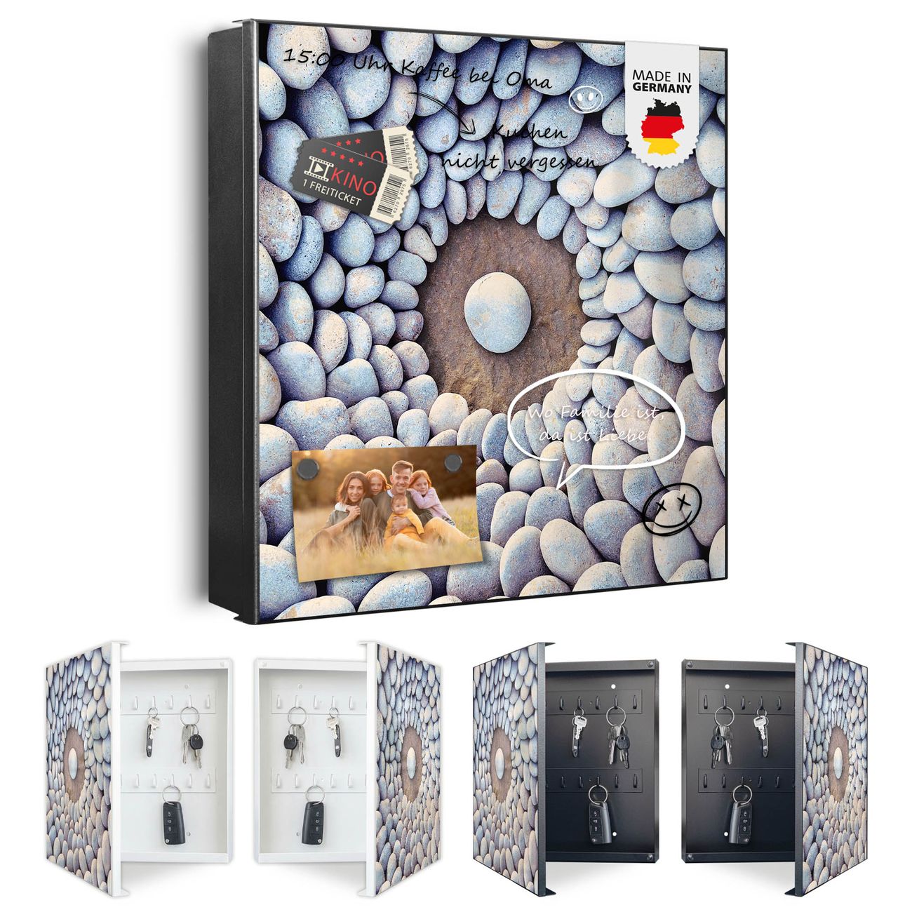 Bringe Ordnung und Eleganz in deinen Eingangsbereich mit dem banjado Schlüsselkasten Motiv Motiv Steinkreis. Die moderne Schlüsselbox kombiniert funktionales Design mit hochwertiger Verarbeitung und wird so zu einem echten Hingucker in Flur, Büro oder Ferienwohnung. ✅ Stilvolle Schlüsselaufbewahrung mit Motiv Motiv Steinkreis Der Design-Schlüsselkasten Motiv Motiv Steinkreis bietet Platz für bis zu 32 Schlüssel, die auf 4 stabilen Reihen mit je 8 Haken übersichtlich verstaut werden. Mit seinen kompakten Maßen von 30 x 30 x 5 cm passt die Schlüsselbox perfekt auch in kleinere Räume. Der schwarz lackierte Stahlkorpus mit links angeschlagenem Türscharnier harmoniert mit gedruckten Folie auf der Front und fügt sich nahtlos in jedes Wohnambiente ein. Ob als Schlüsselorganizer für Zuhause oder als praktische Lösung für Büros, Praxen und Gewerbe, der banjado Schlüsselkasten sorgt für Ordnung und Übersicht. Dank der magnetischen, mit Kreidestiften beschreibbaren Folie auf der Front kannst du Notizen anheften oder Termine direkt auf der Oberfläche festhalten. Die Schlüsselbox Motiv Motiv Steinkreis zur Wandmontage wird inklusive Befestigungsmaterial geliefert und ist schnell angebracht. So hast du deine Schlüssel jederzeit griffbereit und zugleich stilvoll verstaut. Mit diesem banjado Schlüsselkasten Motiv Motiv Steinkreis kombinierst du praktische Aufbewahrung mit stilvollem Wohndesign. Ob privat oder geschäftlich, die Schlüsselbox sorgt für mehr Ordnung, Übersicht und ein wohnliches Ambiente.Vorteile im Überblick