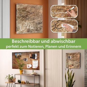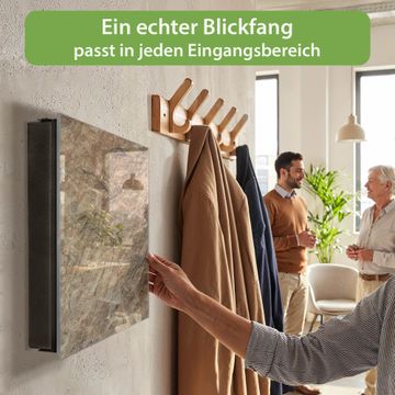 Bringe Ordnung und Eleganz in deinen Eingangsbereich mit dem banjado Schlüsselkasten Motiv Motiv Steinstruktur. Die moderne Schlüsselbox kombiniert funktionales Design mit hochwertiger Verarbeitung und wird so zu einem echten Hingucker in Flur, Büro oder Ferienwohnung. ✅ Stilvolle Schlüsselaufbewahrung mit Glasfront im Motiv Motiv Steinstruktur Der Design-Schlüsselkasten Motiv Motiv Steinstruktur bietet Platz für bis zu 50 Schlüssel, die auf 5 stabilen Reihen mit je 10 Haken übersichtlich verstaut werden. Mit seinen kompakten Maßen von 30 x 30 x 5 cm passt die Schlüsselbox perfekt auch in kleinere Räume. Der schwarz lackierte Stahlkorpus mit rechts angeschlagenem Türscharnier harmoniert mit der Glasfront und fügt sich nahtlos in jedes Wohnambiente ein. Ob als Schlüsselorganizer für Zuhause oder als praktische Lösung für Büros, Praxen und Gewerbe, der banjado Schlüsselkasten sorgt für Ordnung und Übersicht. Dank der magnetischen, mit Kreidestiften beschreibbaren Glasfront kannst du Notizen anheften oder Termine direkt auf der Oberfläche festhalten. Die Schlüsselbox Motiv Motiv Steinstruktur zur Wandmontage wird inklusive Befestigungsmaterial geliefert und ist schnell angebracht. So hast du deine Schlüssel jederzeit griffbereit und zugleich stilvoll verstaut. Mit diesem banjado Schlüsselkasten Motiv Motiv Steinstruktur kombinierst du praktische Aufbewahrung mit stilvollem Wohndesign. Ob privat oder geschäftlich, die Schlüsselbox sorgt für mehr Ordnung, Übersicht und ein wohnliches Ambiente.Vorteile im Überblick