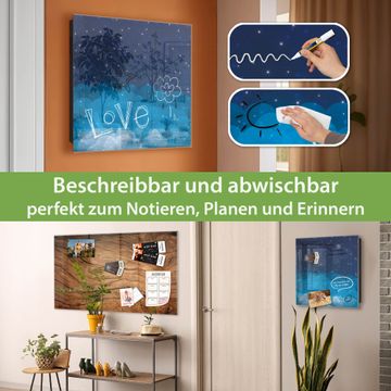 Bringe Ordnung und Eleganz in deinen Eingangsbereich mit dem banjado Schlüsselkasten Motiv Motiv Sternenhimmel 2. Die moderne Schlüsselbox kombiniert funktionales Design mit hochwertiger Verarbeitung und wird so zu einem echten Hingucker in Flur, Büro oder Ferienwohnung. ✅ Stilvolle Schlüsselaufbewahrung mit Glasfront im Motiv Motiv Sternenhimmel 2 Der Design-Schlüsselkasten Motiv Motiv Sternenhimmel 2 bietet Platz für bis zu 50 Schlüssel, die auf 5 stabilen Reihen mit je 10 Haken übersichtlich verstaut werden. Mit seinen kompakten Maßen von 30 x 30 x 5 cm passt die Schlüsselbox perfekt auch in kleinere Räume. Der schwarz lackierte Stahlkorpus mit rechts angeschlagenem Türscharnier harmoniert mit der Glasfront und fügt sich nahtlos in jedes Wohnambiente ein. Ob als Schlüsselorganizer für Zuhause oder als praktische Lösung für Büros, Praxen und Gewerbe, der banjado Schlüsselkasten sorgt für Ordnung und Übersicht. Dank der magnetischen, mit Kreidestiften beschreibbaren Glasfront kannst du Notizen anheften oder Termine direkt auf der Oberfläche festhalten. Die Schlüsselbox Motiv Motiv Sternenhimmel 2 zur Wandmontage wird inklusive Befestigungsmaterial geliefert und ist schnell angebracht. So hast du deine Schlüssel jederzeit griffbereit und zugleich stilvoll verstaut. Mit diesem banjado Schlüsselkasten Motiv Motiv Sternenhimmel 2 kombinierst du praktische Aufbewahrung mit stilvollem Wohndesign. Ob privat oder geschäftlich, die Schlüsselbox sorgt für mehr Ordnung, Übersicht und ein wohnliches Ambiente.Vorteile im Überblick