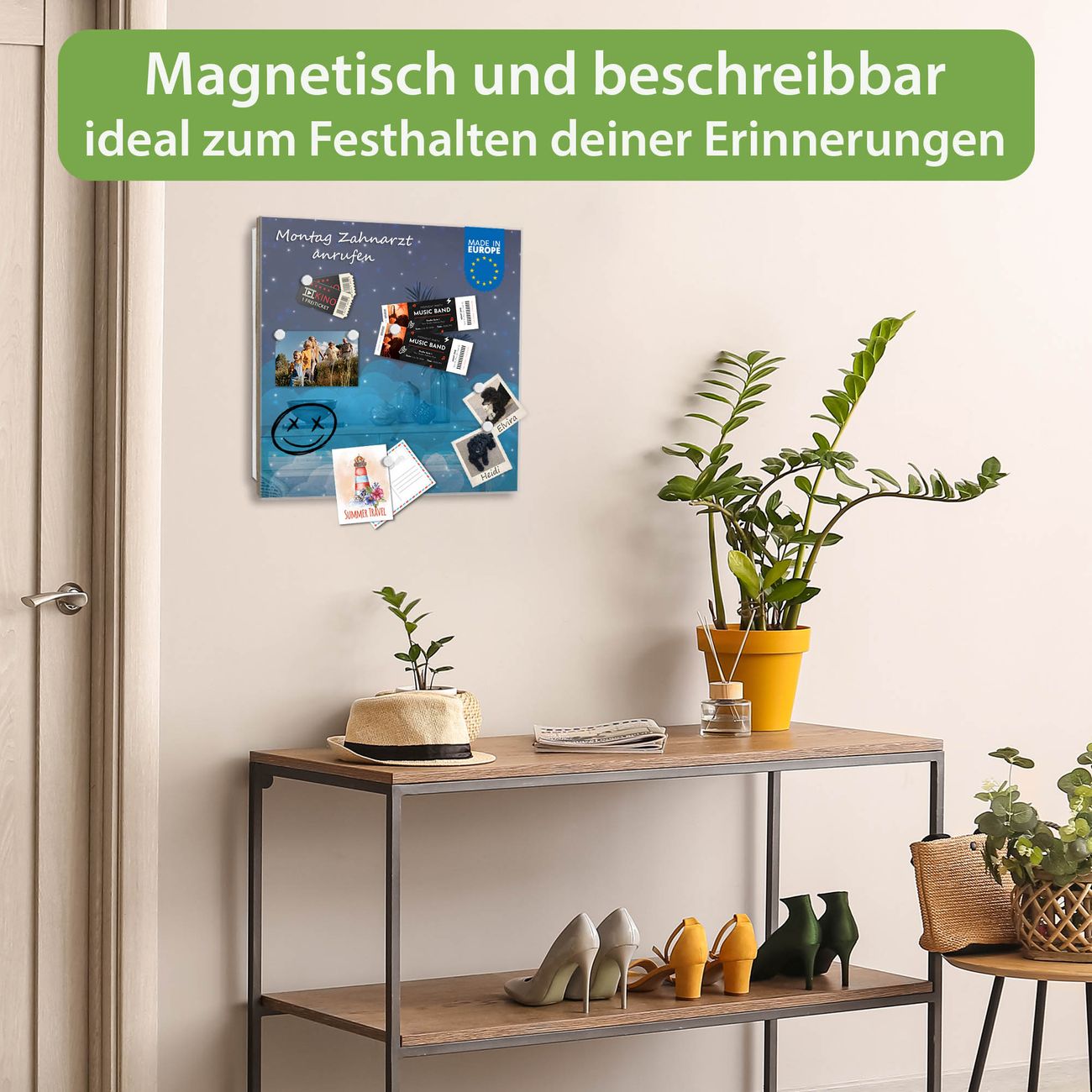 ✅ Magnetisch und mit Kreidestift beschreibbar, gehärtetes Glas, links angeschlagene TürOrdnung und Design in einem