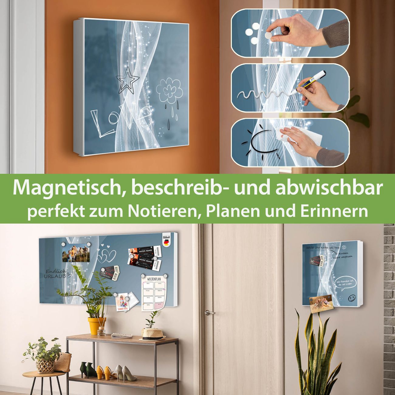 ✅ Magnetisch und mit Kreidestift beschreibbar, links angeschlagene TürOrdnung und Design in einem