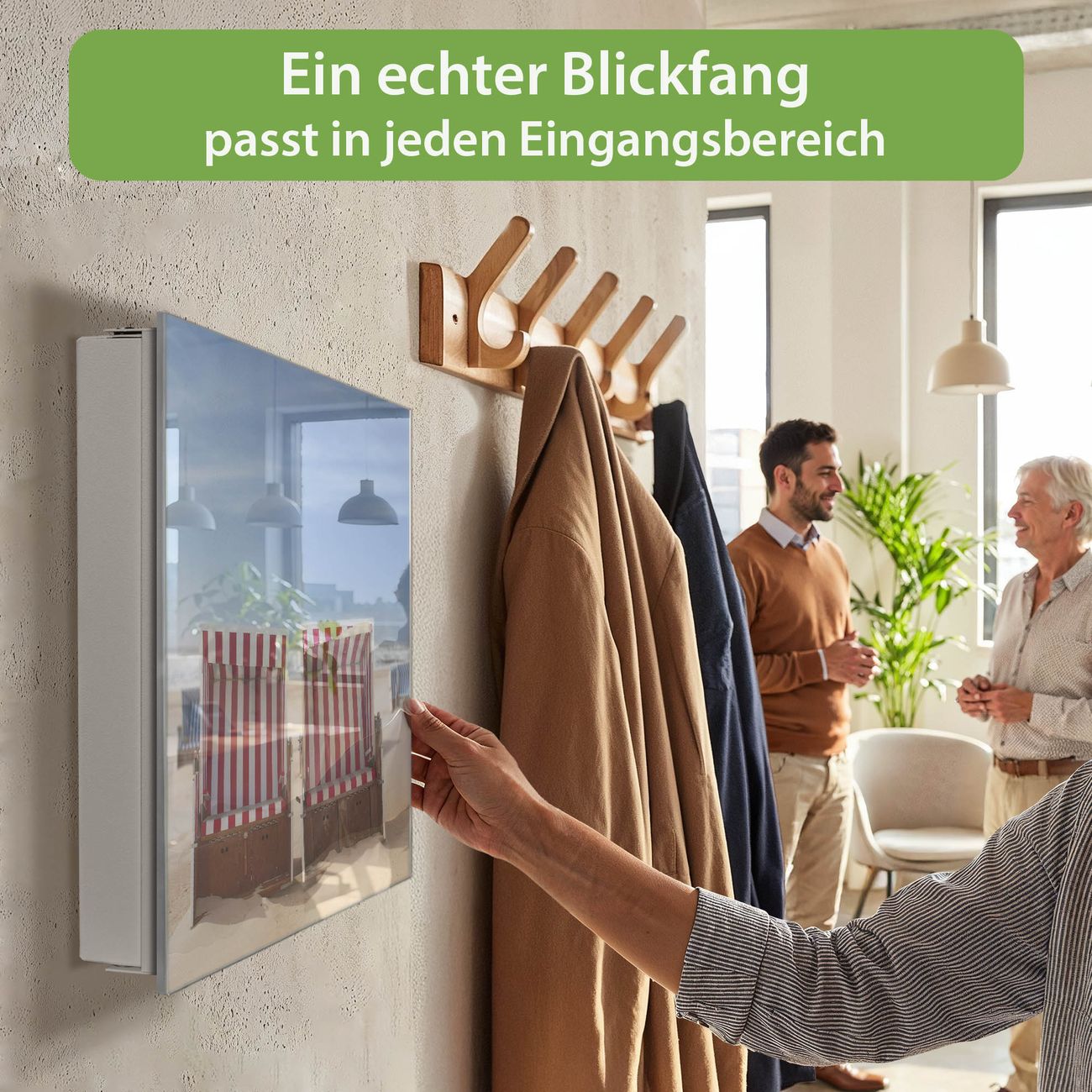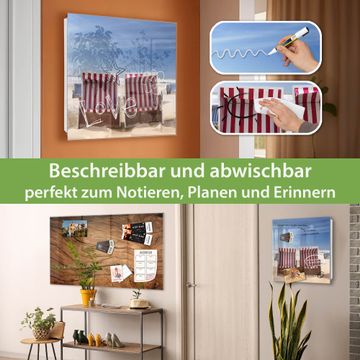 Bringe Ordnung und Eleganz in deinen Eingangsbereich mit dem banjado Schlüsselkasten Motiv Motiv Strandkörbe. Die moderne Schlüsselbox kombiniert funktionales Design mit hochwertiger Verarbeitung und wird so zu einem echten Hingucker in Flur, Büro oder Ferienwohnung. ✅ Stilvolle Schlüsselaufbewahrung mit Glasfront im Motiv Motiv Strandkörbe Der Design-Schlüsselkasten Motiv Motiv Strandkörbe bietet Platz für bis zu 50 Schlüssel, die auf 5 stabilen Reihen mit je 10 Haken übersichtlich verstaut werden. Mit seinen kompakten Maßen von 30 x 30 x 5 cm passt die Schlüsselbox perfekt auch in kleinere Räume. Der weiß lackierte Stahlkorpus mit rechts angeschlagenem Türscharnier harmoniert mit der Glasfront und fügt sich nahtlos in jedes Wohnambiente ein. Ob als Schlüsselorganizer für Zuhause oder als praktische Lösung für Büros, Praxen und Gewerbe, der banjado Schlüsselkasten sorgt für Ordnung und Übersicht. Dank der magnetischen, mit Kreidestiften beschreibbaren Glasfront kannst du Notizen anheften oder Termine direkt auf der Oberfläche festhalten. Die Schlüsselbox Motiv Motiv Strandkörbe zur Wandmontage wird inklusive Befestigungsmaterial geliefert und ist schnell angebracht. So hast du deine Schlüssel jederzeit griffbereit und zugleich stilvoll verstaut. Mit diesem banjado Schlüsselkasten Motiv Motiv Strandkörbe kombinierst du praktische Aufbewahrung mit stilvollem Wohndesign. Ob privat oder geschäftlich, die Schlüsselbox sorgt für mehr Ordnung, Übersicht und ein wohnliches Ambiente.Vorteile im Überblick