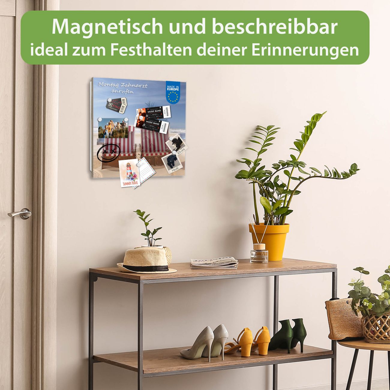 ✅ Magnetisch und mit Kreidestift beschreibbar, gehärtetes Glas, links angeschlagene TürOrdnung und Design in einem