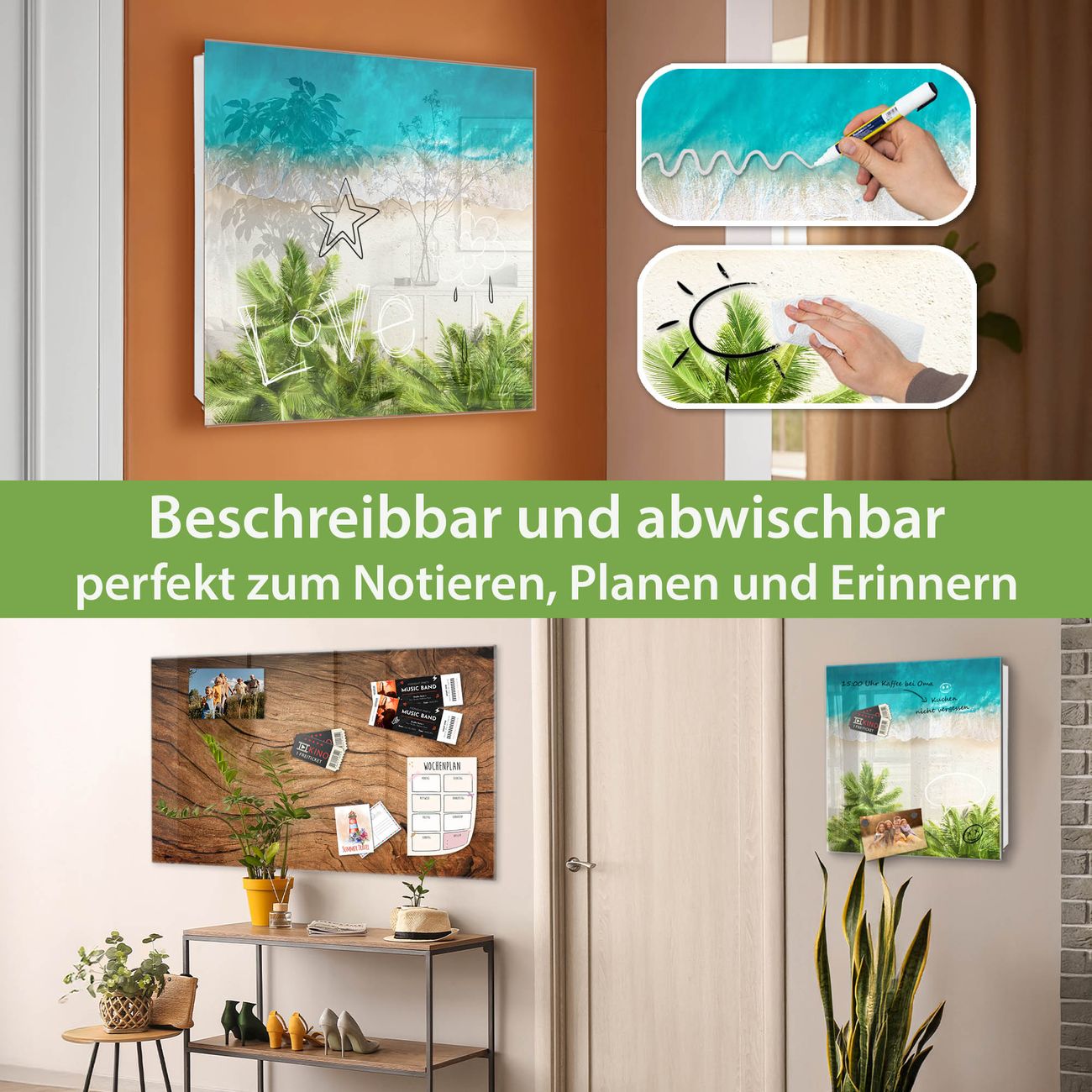 ✅ Magnetisch und mit Kreidestift beschreibbar, gehärtetes Glas, rechts angeschlagene TürOrdnung und Design in einem