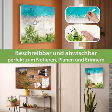 Bringe Ordnung und Eleganz in deinen Eingangsbereich mit dem banjado Schlüsselkasten Motiv Motiv Strandtag. Die moderne Schlüsselbox kombiniert funktionales Design mit hochwertiger Verarbeitung und wird so zu einem echten Hingucker in Flur, Büro oder Ferienwohnung. ✅ Stilvolle Schlüsselaufbewahrung mit Glasfront im Motiv Motiv Strandtag Der Design-Schlüsselkasten Motiv Motiv Strandtag bietet Platz für bis zu 50 Schlüssel, die auf 5 stabilen Reihen mit je 10 Haken übersichtlich verstaut werden. Mit seinen kompakten Maßen von 30 x 30 x 5 cm passt die Schlüsselbox perfekt auch in kleinere Räume. Der weiß lackierte Stahlkorpus mit rechts angeschlagenem Türscharnier harmoniert mit der Glasfront und fügt sich nahtlos in jedes Wohnambiente ein. Ob als Schlüsselorganizer für Zuhause oder als praktische Lösung für Büros, Praxen und Gewerbe, der banjado Schlüsselkasten sorgt für Ordnung und Übersicht. Dank der magnetischen, mit Kreidestiften beschreibbaren Glasfront kannst du Notizen anheften oder Termine direkt auf der Oberfläche festhalten. Die Schlüsselbox Motiv Motiv Strandtag zur Wandmontage wird inklusive Befestigungsmaterial geliefert und ist schnell angebracht. So hast du deine Schlüssel jederzeit griffbereit und zugleich stilvoll verstaut. Mit diesem banjado Schlüsselkasten Motiv Motiv Strandtag kombinierst du praktische Aufbewahrung mit stilvollem Wohndesign. Ob privat oder geschäftlich, die Schlüsselbox sorgt für mehr Ordnung, Übersicht und ein wohnliches Ambiente.Vorteile im Überblick
