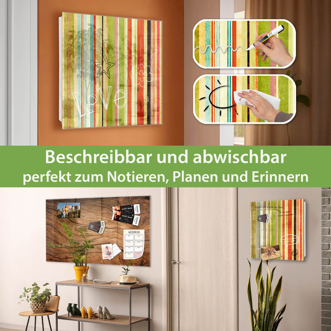 ✅ Magnetisch und mit Kreidestift beschreibbar, gehärtetes Glas, links angeschlagene TürOrdnung und Design in einem