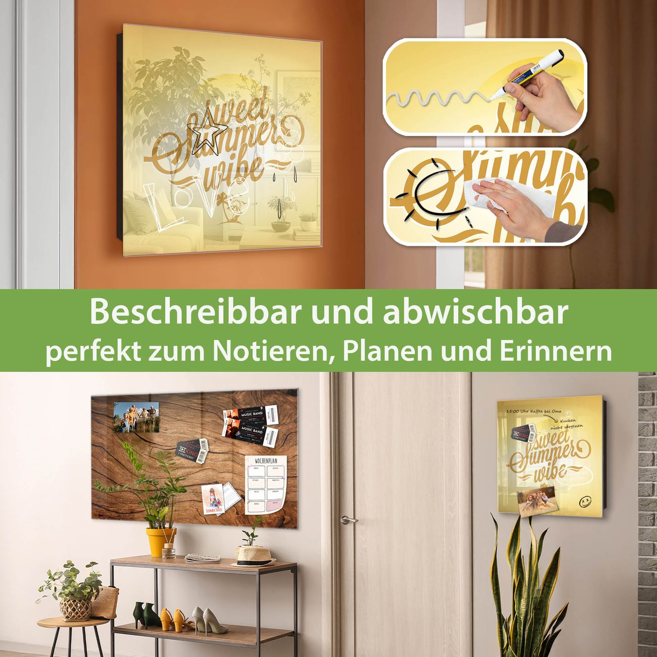 ✅ Magnetisch und mit Kreidestift beschreibbar, gehärtetes Glas, rechts angeschlagene TürOrdnung und Design in einem