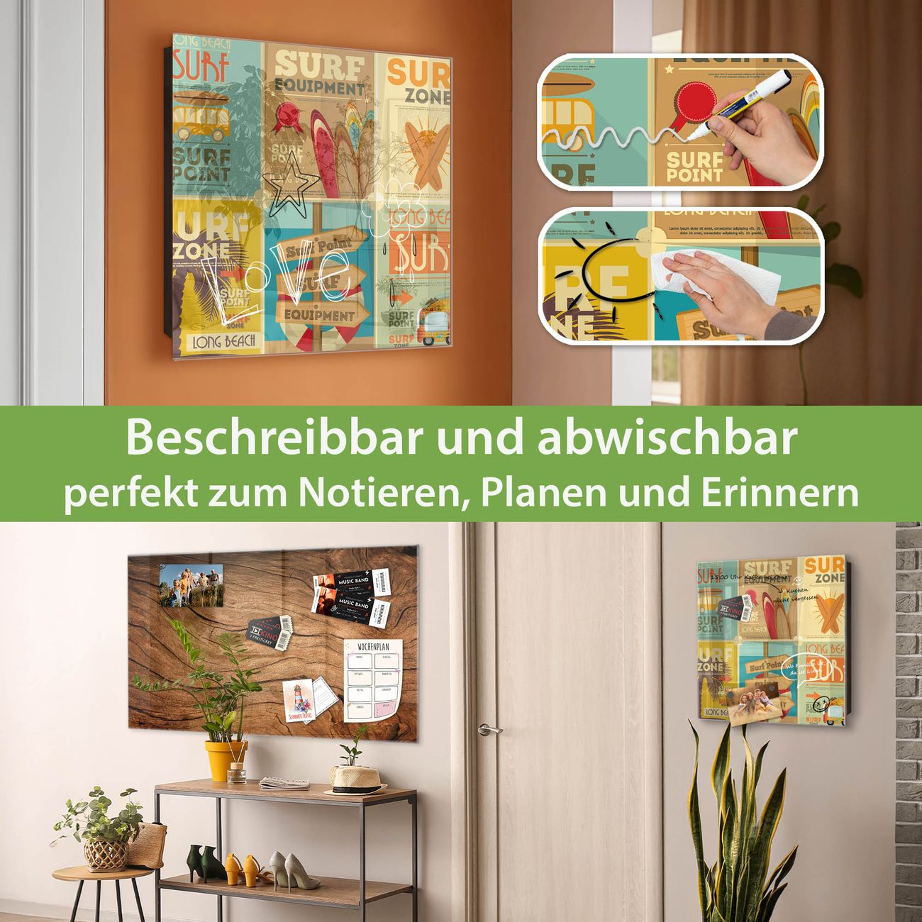 ✅ Magnetisch und mit Kreidestift beschreibbar, gehärtetes Glas, rechts angeschlagene TürOrdnung und Design in einem