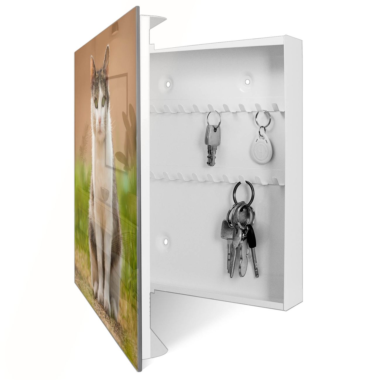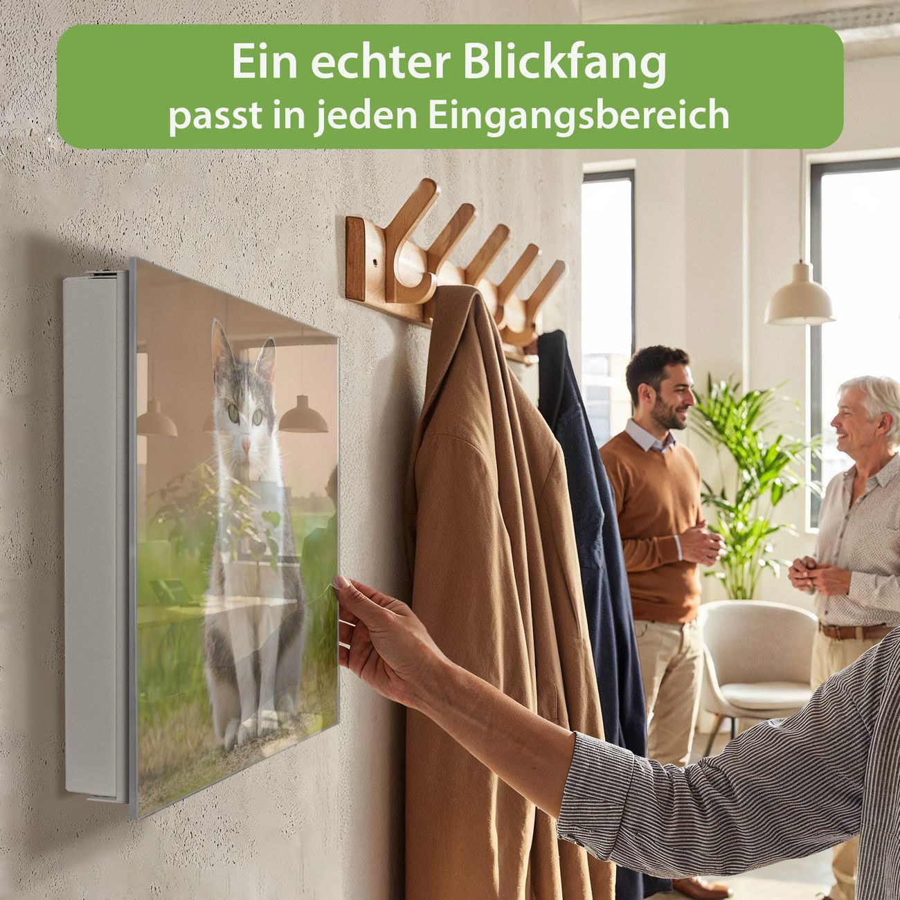 Bringe Ordnung und Eleganz in deinen Eingangsbereich mit dem banjado Schlüsselkasten Motiv Motiv Suse. Die moderne Schlüsselbox kombiniert funktionales Design mit hochwertiger Verarbeitung und wird so zu einem echten Hingucker in Flur, Büro oder Ferienwohnung. ✅ Stilvolle Schlüsselaufbewahrung mit Glasfront im Motiv Motiv Suse Der Design-Schlüsselkasten Motiv Motiv Suse bietet Platz für bis zu 50 Schlüssel, die auf 5 stabilen Reihen mit je 10 Haken übersichtlich verstaut werden. Mit seinen kompakten Maßen von 30 x 30 x 5 cm passt die Schlüsselbox perfekt auch in kleinere Räume. Der weiß lackierte Stahlkorpus mit rechts angeschlagenem Türscharnier harmoniert mit der Glasfront und fügt sich nahtlos in jedes Wohnambiente ein. Ob als Schlüsselorganizer für Zuhause oder als praktische Lösung für Büros, Praxen und Gewerbe, der banjado Schlüsselkasten sorgt für Ordnung und Übersicht. Dank der magnetischen, mit Kreidestiften beschreibbaren Glasfront kannst du Notizen anheften oder Termine direkt auf der Oberfläche festhalten. Die Schlüsselbox Motiv Motiv Suse zur Wandmontage wird inklusive Befestigungsmaterial geliefert und ist schnell angebracht. So hast du deine Schlüssel jederzeit griffbereit und zugleich stilvoll verstaut. Mit diesem banjado Schlüsselkasten Motiv Motiv Suse kombinierst du praktische Aufbewahrung mit stilvollem Wohndesign. Ob privat oder geschäftlich, die Schlüsselbox sorgt für mehr Ordnung, Übersicht und ein wohnliches Ambiente.Vorteile im Überblick